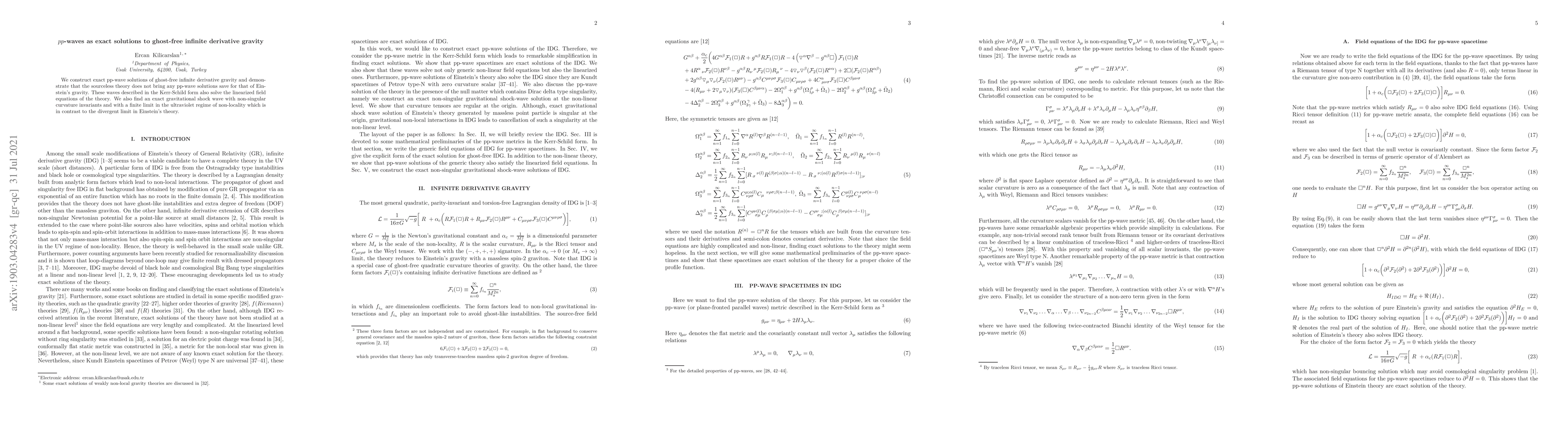 This paper constructs exact pp-wave solutions for ghost-free infinite derivative gravity, showing that the sourceless theory yields no new pp-wave solutions beyond those in Einstein's gravity. It also presents an exact gravitational shock wave with non-singular curvature invariants and a finite ultraviolet limit, contrasting with the divergent limit in Einstein's theory.