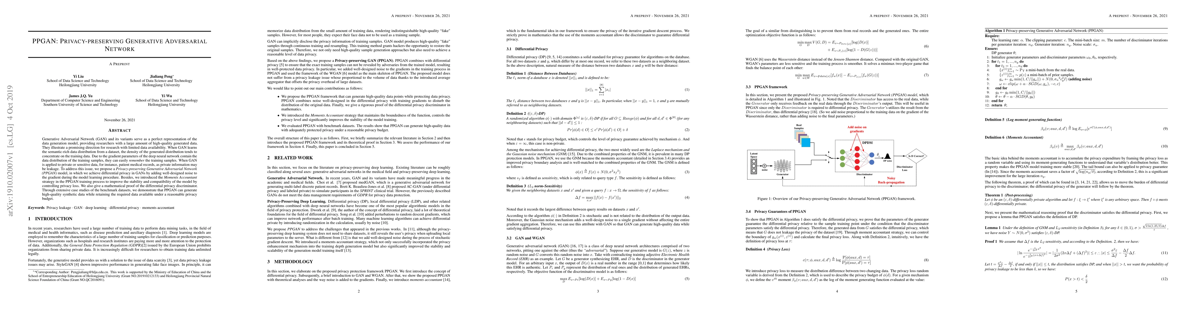 PPGAN proposes a Privacy-preserving Generative Adversarial Network that adds noise to gradients to achieve differential privacy, mitigating the risk of private information leakage when generating synthetic data from sensitive datasets. This model employs the Moments Accountant strategy to maintain stability and compatibility, successfully generating high-quality synthetic data within a reasonable privacy budget.