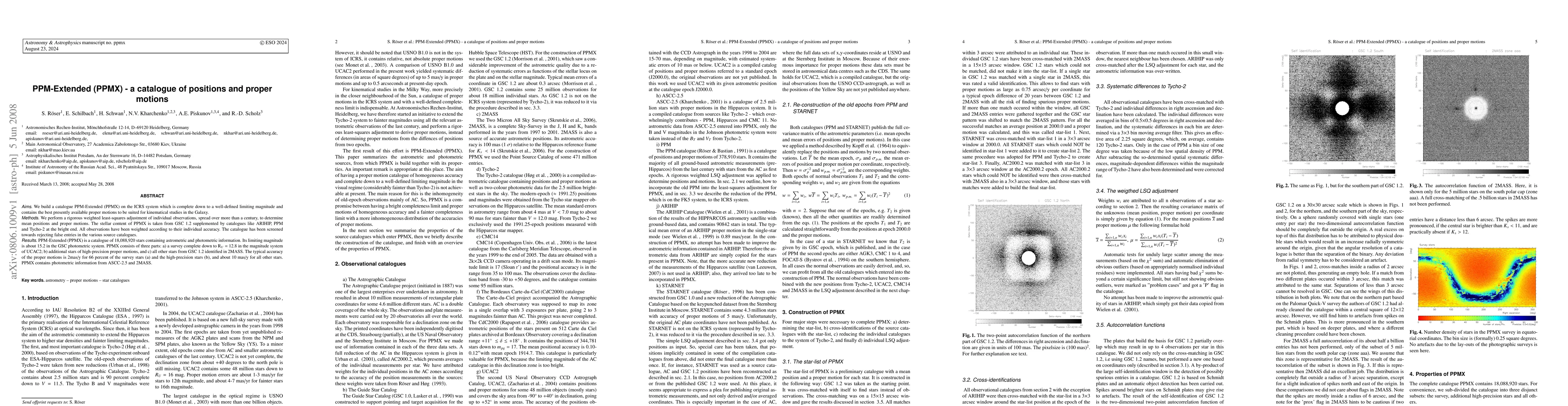 The PPM-Extended (PPMX) catalogue compiles 18,088,920 stars with precise positions and proper motions, suitable for galactic kinematic studies, achieving a typical accuracy of 2 mas/y for most stars and 10 mas/y for others, with a limiting magnitude of 15.2. The catalogue integrates data from various sources, including GSC 1.2, ARIHIP, PPM, and Tycho-2, and is complete down to R_U = 12.8.