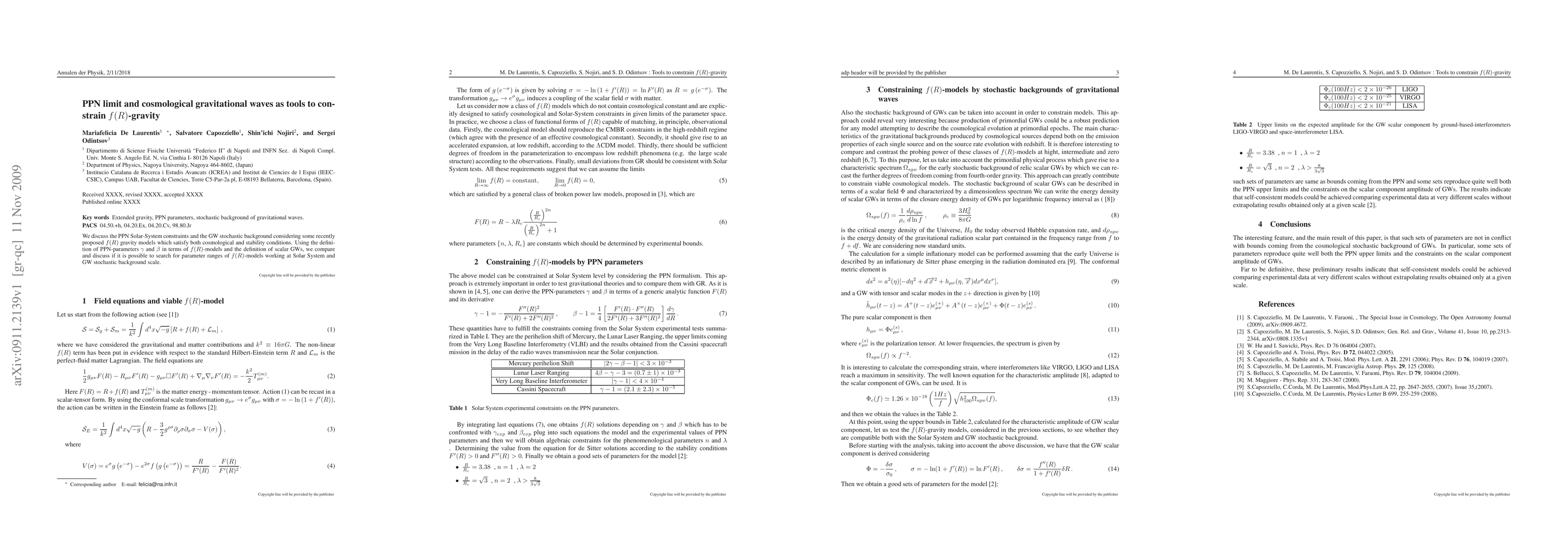 This paper explores the use of PPN Solar-System constraints and cosmological gravitational waves to constrain $f(R)$ gravity models. It investigates if these tools can identify parameter ranges for $f(R)$ models that are viable both at Solar System and stochastic gravitational wave scales.
