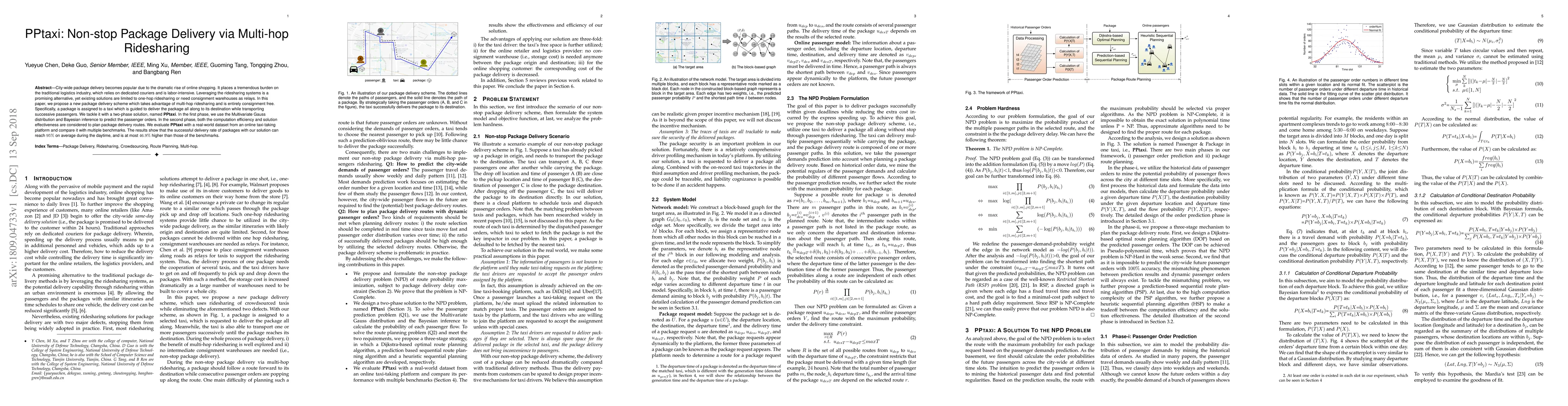 City-wide package delivery becomes popular due to the dramatic rise of online shopping. It places a tremendous burden on the traditional logistics industry, which relies on dedicated couriers and is labor-intensive. Leveraging the ridesharing systems is a promising alternative, yet existing solutions are limited to one-hop ridesharing or need consignment warehouses as relays. In this paper, we propose a new package delivery scheme which takes advantage of multi-hop ridesharing and is entirely consignment free. Specifically, a package is assigned to a taxi which is guided to deliver the package all along to its destination while transporting successive passengers. We tackle it with a two-phase solution, named \textbf{PPtaxi}. In the first phase, we use the Multivariate Gauss distribution and Bayesian inference to predict the passenger orders. In the second phase, both the computation efficiency and solution effectiveness are considered to plan package delivery routes. We evaluate \textbf{PPtaxi} with a real-world dataset from an online taxi-taking platform and compare it with multiple benchmarks. The results show that the successful delivery rate of packages with our solution can reach $95\%$ on average during the daytime, and is at most $46.9\%$ higher than those of the benchmarks.