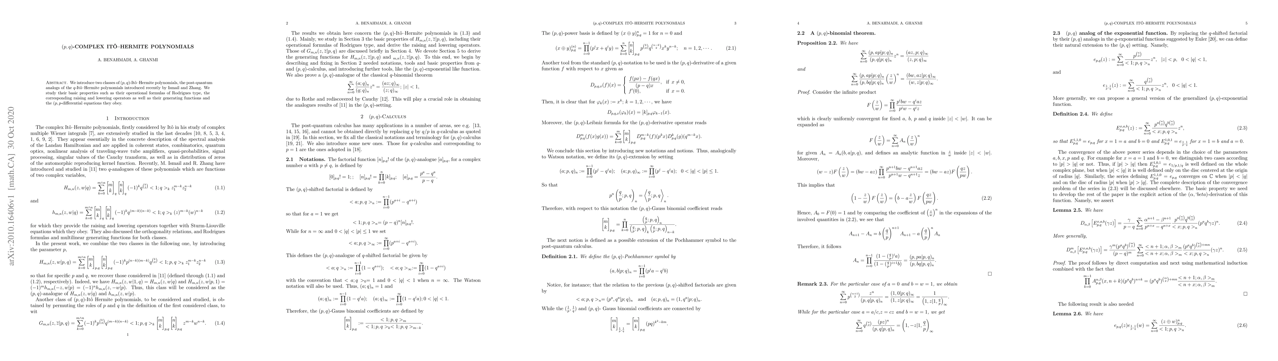 This paper introduces $(p,q)$-Itô-Hermite polynomials as post-quantum analogs of $q$-Itô-Hermite polynomials, exploring their operational formulas, raising and lowering operators, generating functions, and associated $(p,p)$-differential equations.