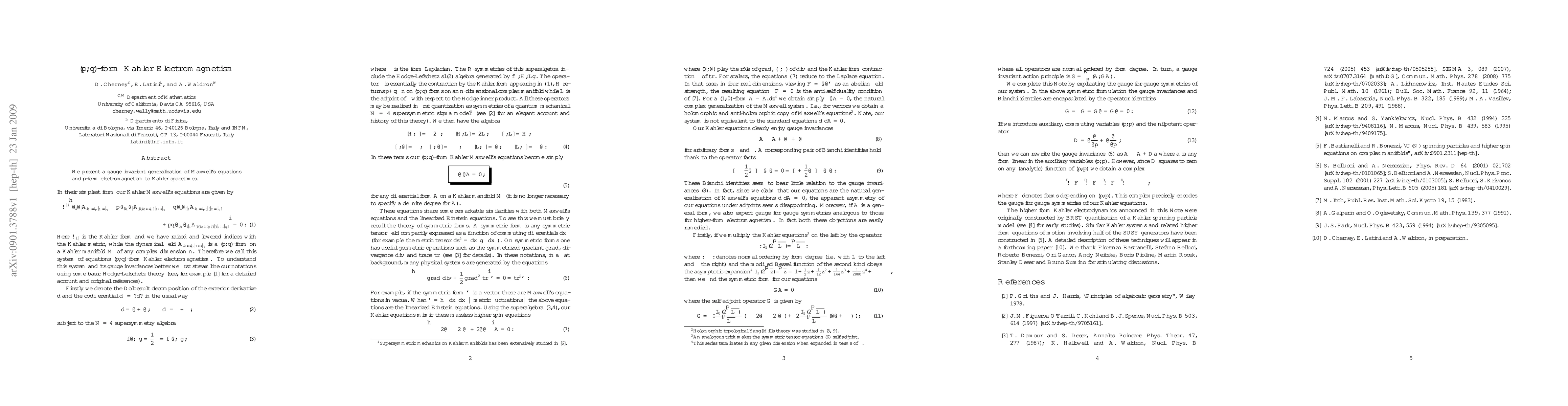 The paper introduces a gauge-invariant formulation of electromagnetism on Kaehler manifolds using a superalgebra, generalizing Maxwell's equations to (p,q)-forms.