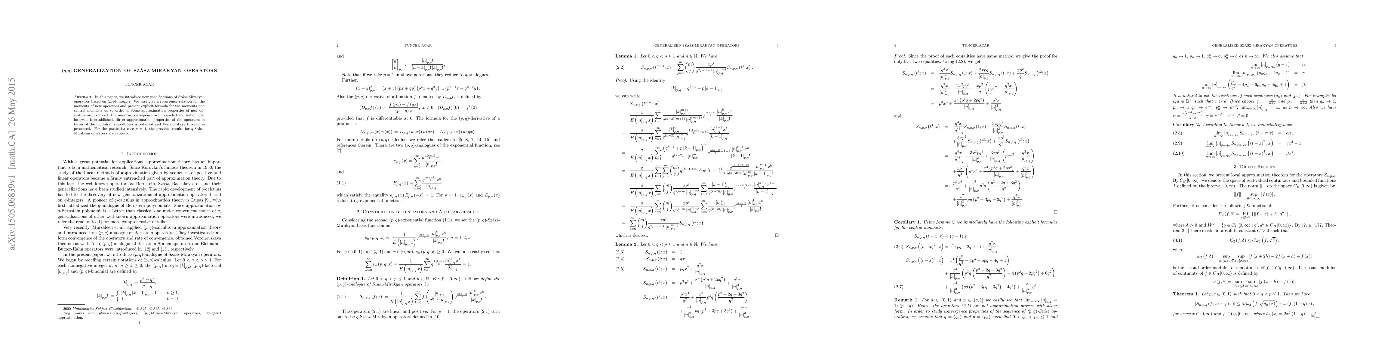 In this paper, we introduce new modifications of Szasz-Mirakyan operators based on (p,q)-integers. We first give a recurrence relation for the moments of new operators and present explicit formula for the moments and central moments up to order 4. Some approximation properties of new operators are explored: the uniform convergence over bounded and unbounded intervals is established, direct approximation properties of the operators in terms of the moduli of smoothness is obtained and Voronovskaya theorem is presented. For the particular case p=1, the previous results for q-Szasz-Mirakyan operators are captured.