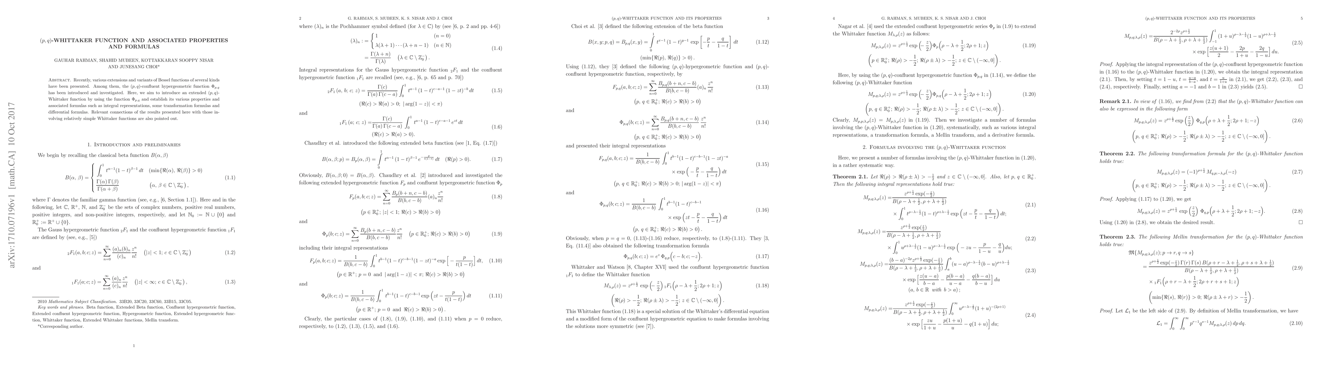 Recently, various extensions and variants of Bessel functions of several kinds have been presented. Among them, the $(p,q)$-confluent hypergeometric function $\Phi_{p,q}$ has been introduced and investigated. Here, we aim to introduce an extended $(p,q)$-Whittaker function by using the function $\Phi_{p,q}$ and establish its various properties and associated formulas such as integral representations, some transformation formulas and differential formulas. Relevant connections of the results presented here With those involving relatively simple Whittaker functions are also pointed out.