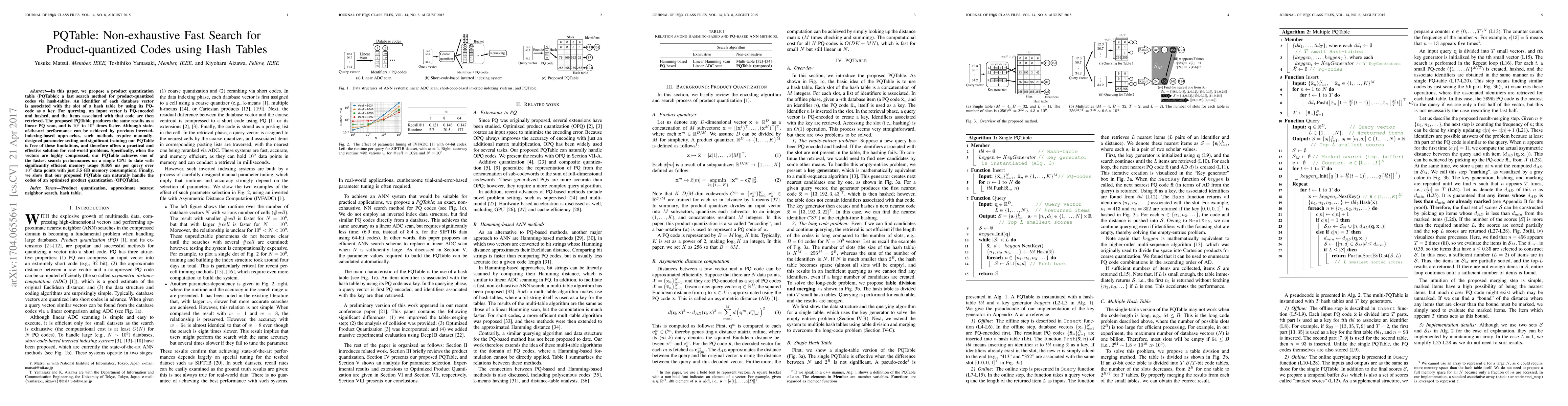 In this paper, we propose a product quantization table (PQTable); a fast search method for product-quantized codes via hash-tables. An identifier of each database vector is associated with the slot of a hash table by using its PQ-code as a key. For querying, an input vector is PQ-encoded and hashed, and the items associated with that code are then retrieved. The proposed PQTable produces the same results as a linear PQ scan, and is 10^2 to 10^5 times faster. Although state-of-the-art performance can be achieved by previous inverted-indexing-based approaches, such methods require manually-designed parameter setting and significant training; our PQTable is free of these limitations, and therefore offers a practical and effective solution for real-world problems. Specifically, when the vectors are highly compressed, our PQTable achieves one of the fastest search performances on a single CPU to date with significantly efficient memory usage (0.059 ms per query over 10^9 data points with just 5.5 GB memory consumption). Finally, we show that our proposed PQTable can naturally handle the codes of an optimized product quantization (OPQTable).