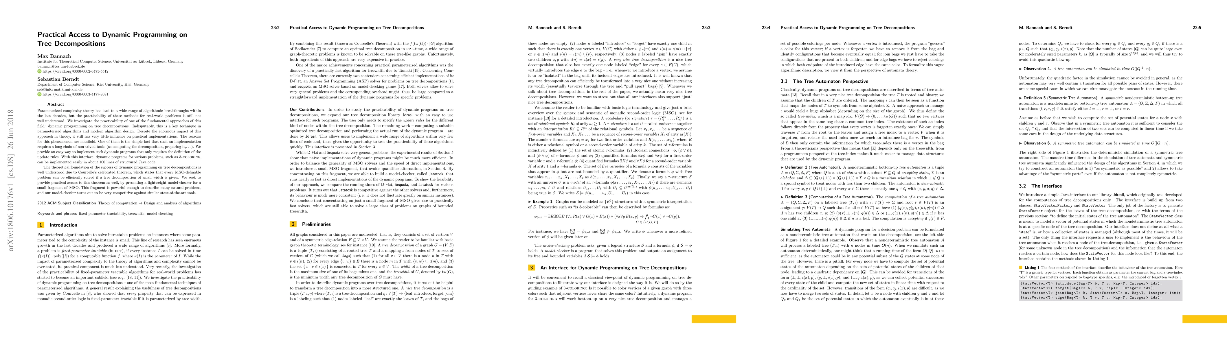 Researchers developed an easy-to-use framework to implement dynamic programming on tree decompositions, enabling efficient solutions for problems like 3-coloring in under 100 lines of code. The tool is competitive with state-of-the-art models and provides practical access to Courcelle's theorem.