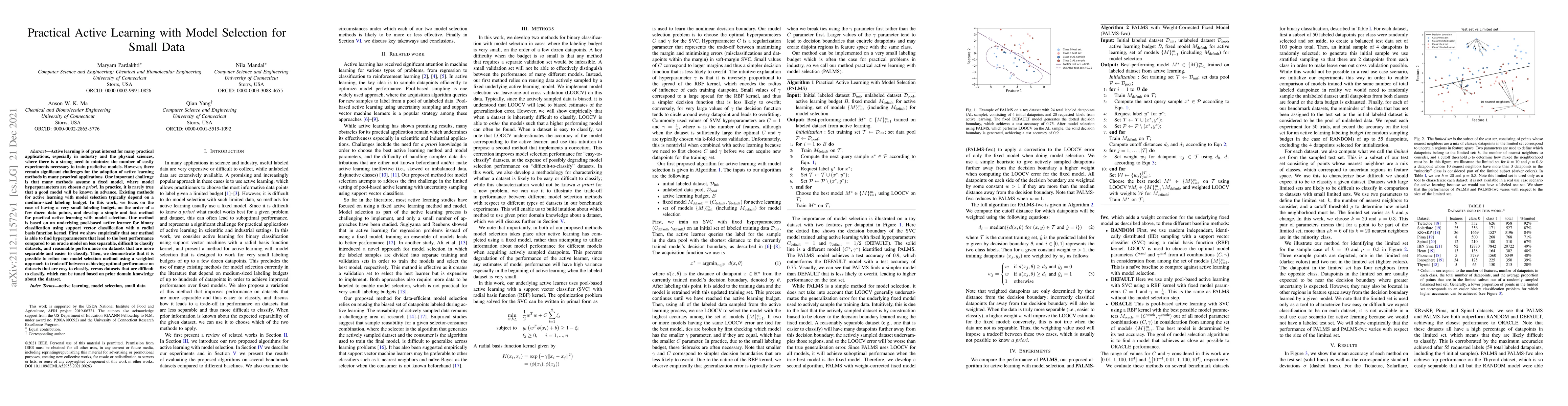 This research paper introduces a practical method for active learning with model selection, focusing on small data sets, and demonstrates its ability to achieve optimal performance on difficult-to-classify datasets while balancing between ease of classification.