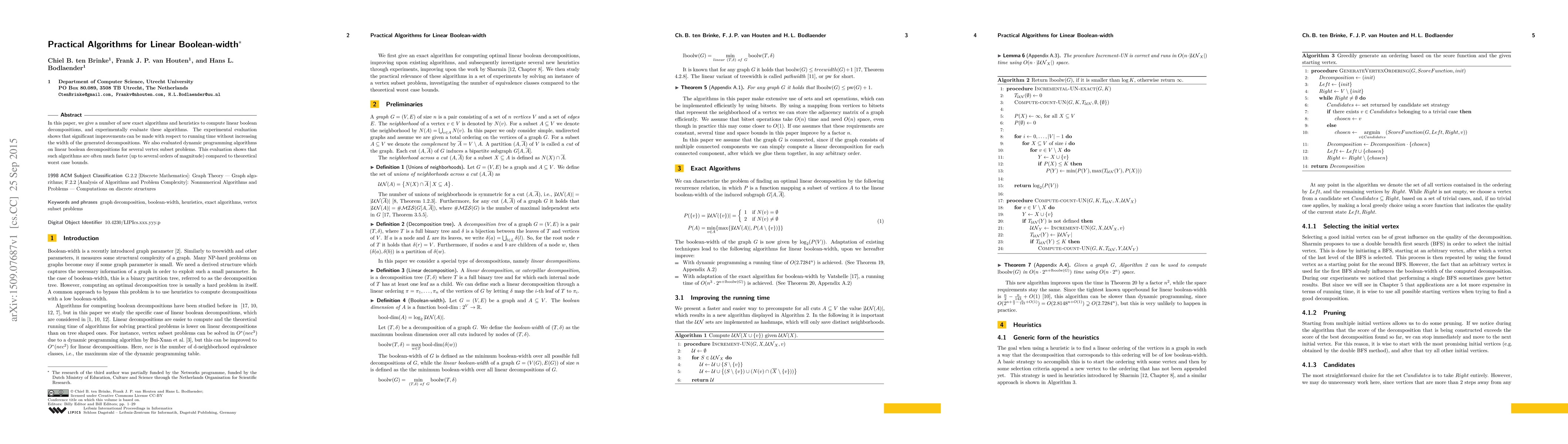 Researchers developed practical algorithms for linear Boolean-width decompositions, significantly improving running times without increasing width, and found that dynamic programming algorithms can be up to several orders of magnitude faster than theoretical worst-case bounds.