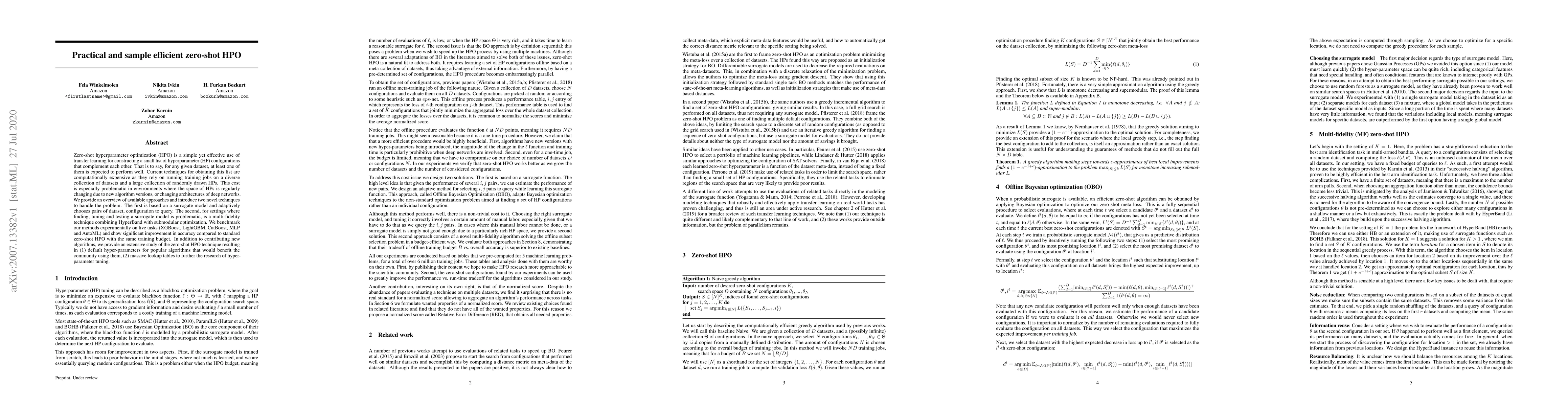 Researchers develop two efficient methods for zero-shot hyperparameter optimization, improving accuracy on five tasks with a limited training budget, and providing default hyperparameters and lookup tables for popular algorithms.