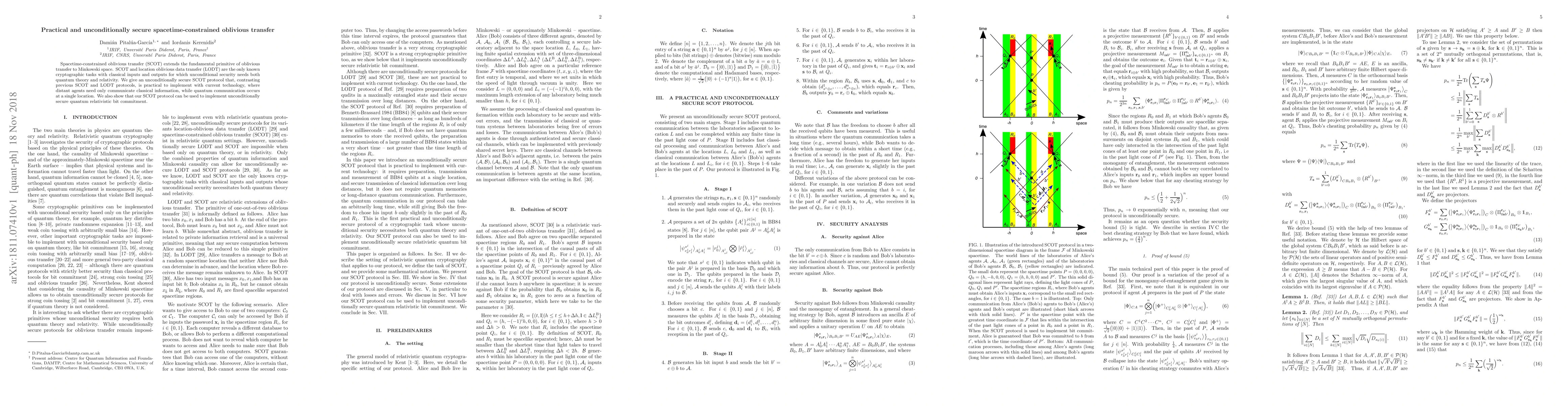 This paper presents an unconditionally secure, practical spacetime-constrained oblivious transfer (SCOT) protocol that leverages classical communication and quantum communication at a single location, contrasting previous protocols. The proposed SCOT protocol also enables the implementation of unconditionally secure quantum relativistic bit commitment.