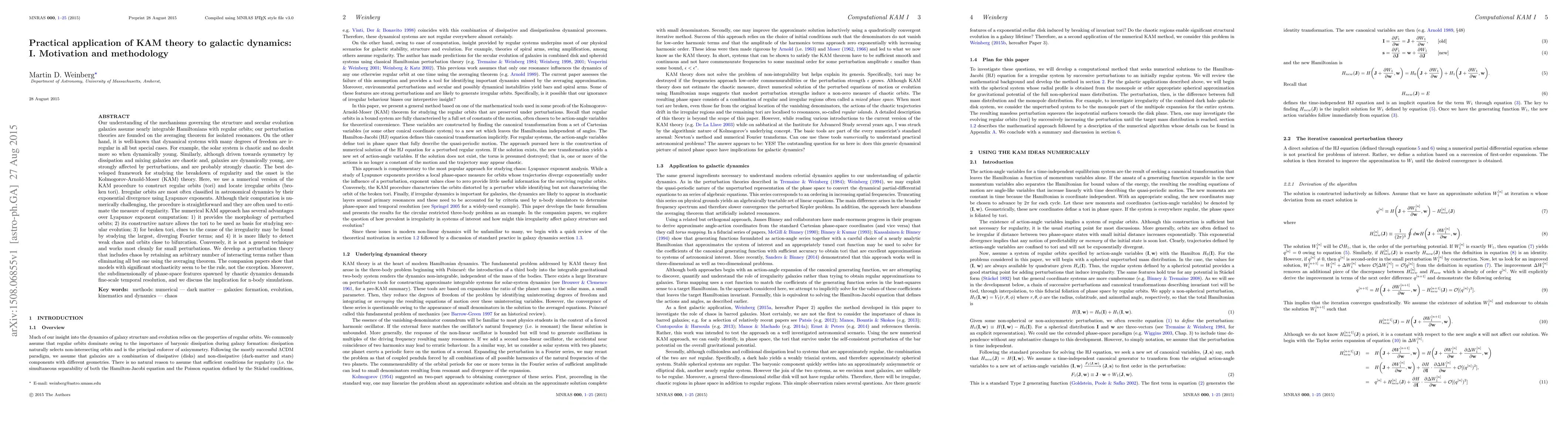 Our understanding of the mechanisms governing the structure and secular evolution galaxies assume nearly integrable Hamiltonians with regular orbits; our perturbation theories are founded on the averaging theorem for isolated resonances. On the other hand, it is well-known that dynamical systems with many degrees of freedom are irregular in all but special cases. The best developed framework for studying the breakdown of regularity and the onset is the Kolmogorov-Arnold-Moser (KAM) theory. Here, we use a numerical version of the KAM procedure to construct regular orbits (tori) and locate irregular orbits (broken tori). Irregular orbits are most often classified in astronomical dynamics by their exponential divergence using Lyapunov exponents. Although their computation is numerically challenging, the procedure is straightforward and they are often used to estimate the measure of regularity. The numerical KAM approach has several advantages: 1) it provides the morphology of perturbed orbits; 2) its constructive nature allows the tori to be used as basis for studying secular evolution; 3) for broken tori, clues to the cause of the irregularity may be found by studying the largest, diverging Fourier terms; and 4) it is more likely to detect weak chaos and orbits close to bifurcation. Conversely, it is not a general technique and works most cleanly for small perturbations. We develop a perturbation theory that includes chaos by retaining an arbitrary number of interacting terms rather than eliminating all but one using the averaging theorem. The companion papers show that models with significant stochasticity seem to be the rule, not the exception.