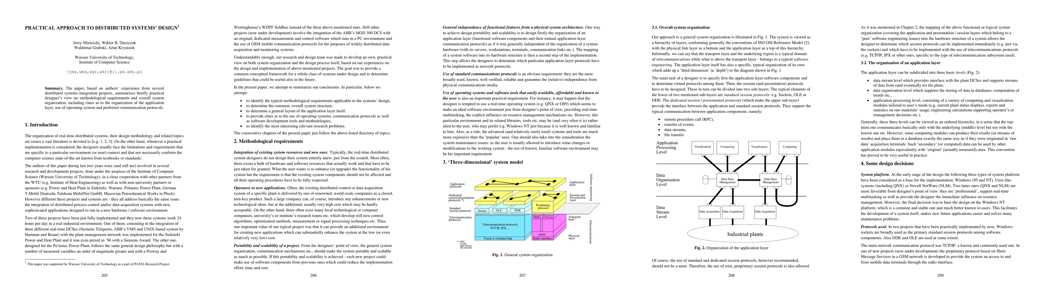 This paper outlines practical guidelines for designing distributed systems, covering application layer organization, operating system selection, and communication protocols. It offers insights from real-world projects to help developers create efficient and effective distributed systems.