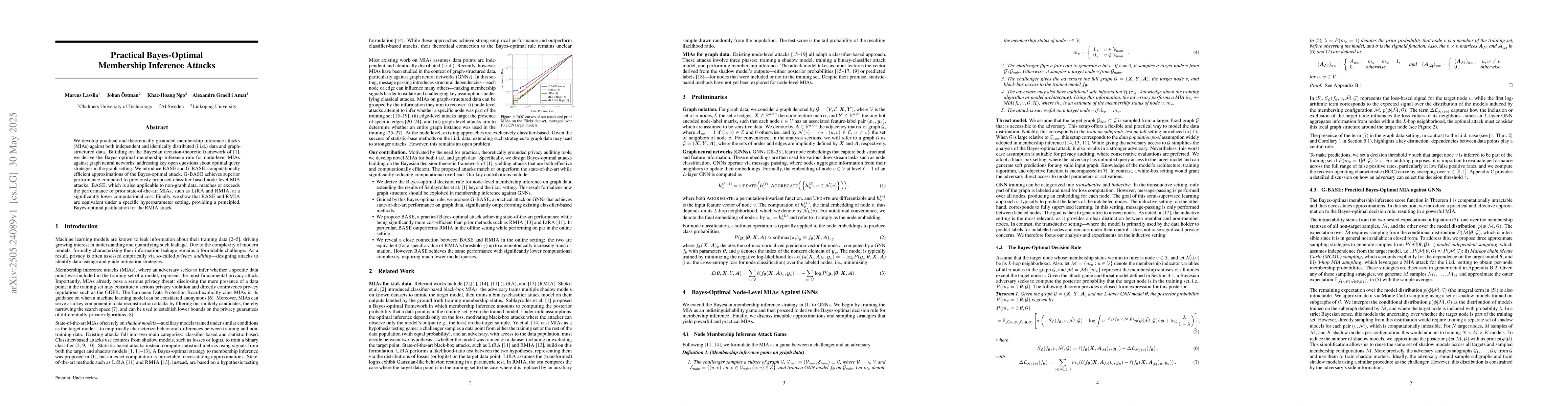 Researchers develop practical Bayes-optimal membership inference attacks against independent and graph-structured data, offering improved performance over existing methods at lower computational cost.