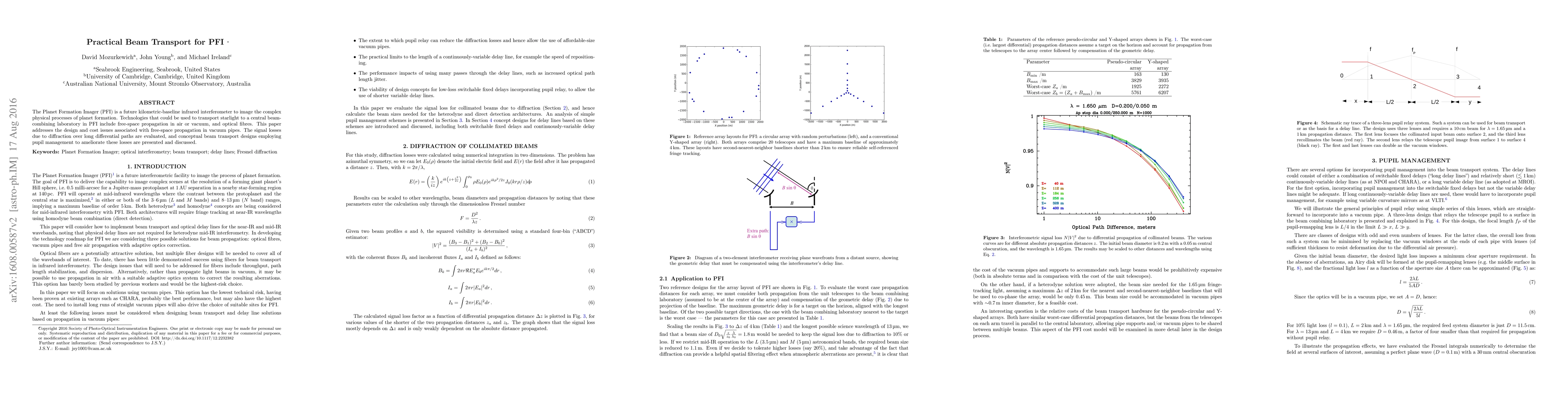 The Planet Formation Imager (PFI) is a future kilometric-baseline infrared interferometer to image the complex physical processes of planet formation. Technologies that could be used to transport starlight to a central beam-combining laboratory in PFI include free-space propagation in air or vacuum, and optical fibres. This paper addresses the design and cost issues associated with free-space propagation in vacuum pipes. The signal losses due to diffraction over long differential paths are evaluated, and conceptual beam transport designs employing pupil management to ameliorate these losses are presented and discussed.
