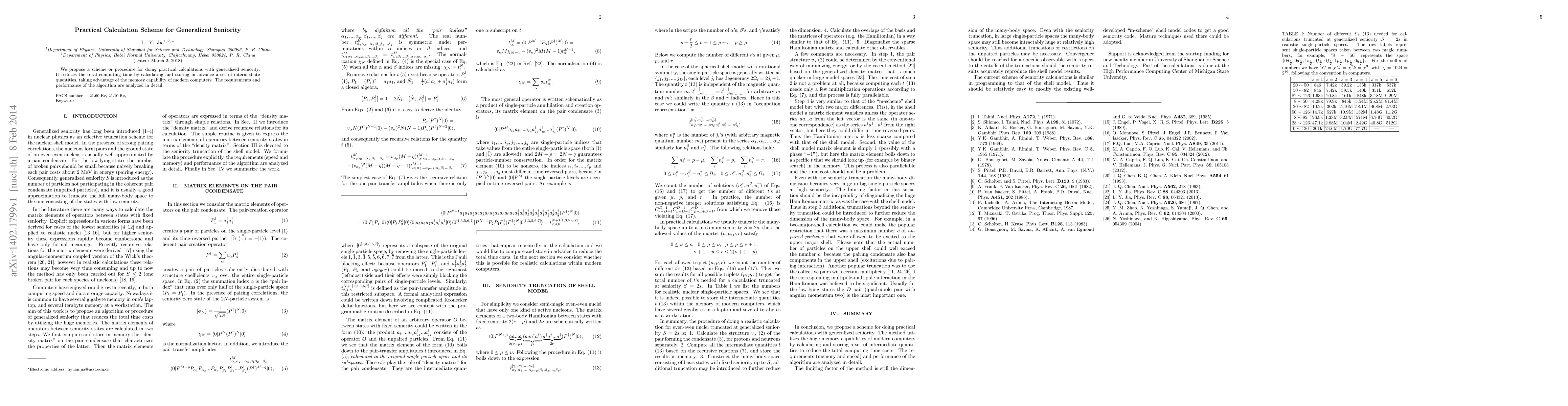 Researchers propose a practical scheme to speed up calculations with generalized seniority, reducing computing time by pre-calculating intermediate quantities and leveraging modern computer memory.