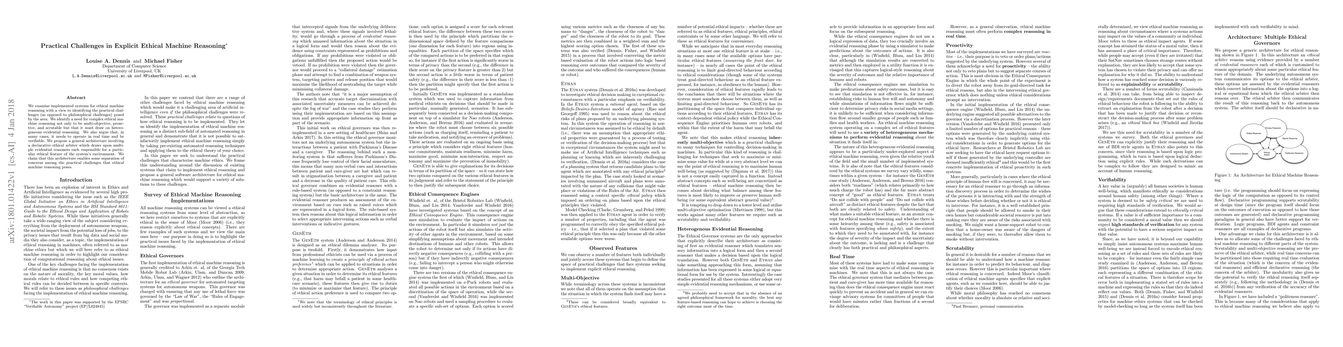 Researchers identify practical challenges in developing ethical machine reasoning systems that must balance multiple objectives, operate in real-time, and be verifiable. They propose a general architecture to address these challenges by using heterogeneous evidential reasoning and separating concerns among different components.