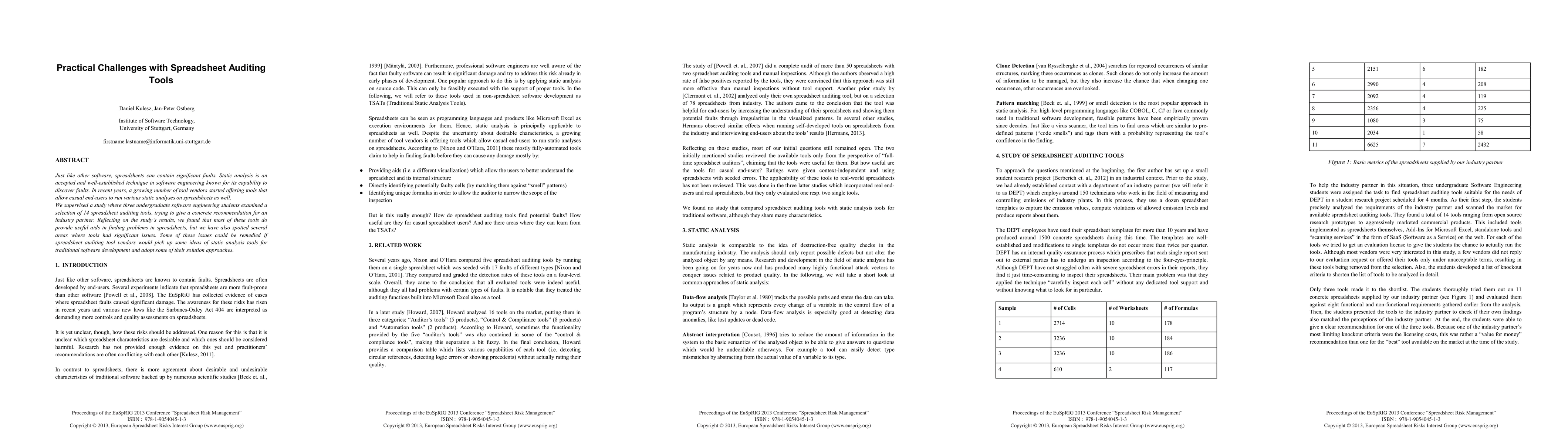 This study evaluated 14 spreadsheet auditing tools used by undergraduate students, finding that while most tools aid in identifying spreadsheet faults, several had significant issues that could benefit from adopting static analysis techniques used in traditional software development.