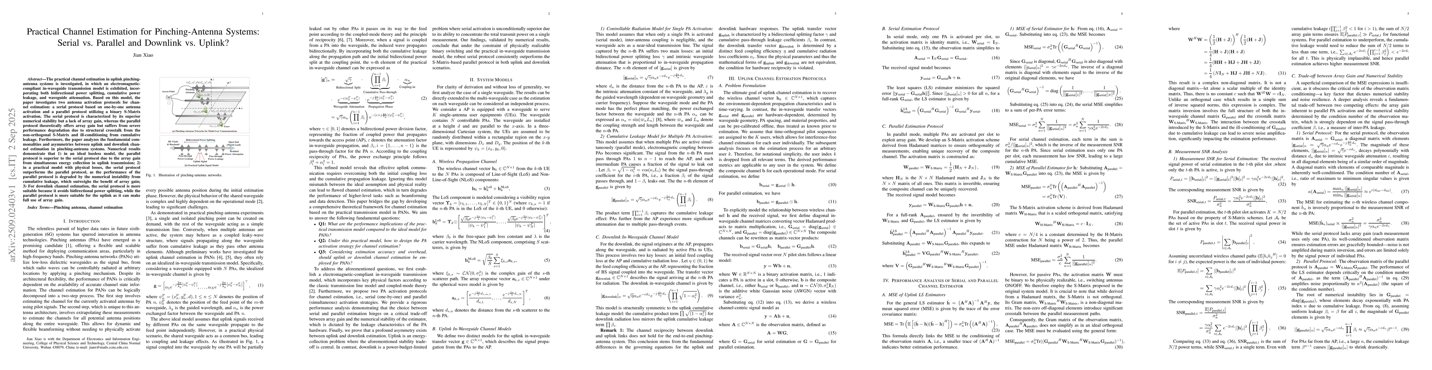 The practical channel estimation in uplink pinching-antenna systems is investigated, in which an electromagnetic-compliant in-waveguide transmission model is exhibited, incorporating both bidirectional power splitting, cumulative power leakage, and waveguide attenuation. Based on this model, the paper investigates two antenna activation protocols for channel estimation: a serial protocol based on one-by-one antenna activation and a parallel protocol utilizing a binary S-Matrix activation. The serial protocol is characterized by its superior numerical stability but a lack of array gain, whereas the parallel protocol theoretically offers array gain but suffers from severe performance degradation due to structural crosstalk from the non-orthogonal S-Matrix and ill-conditioning from cumulative leakage. Furthermore, the paper analyzes the fundamental commonalities and asymmetries between uplink and downlink channel estimation in pinching-antenna systems. Numerical results demonstrate that 1) in an ideal lossless model, the parallel protocol is superior to the serial protocol due to the array gain from simultaneous energy collection in uplink transmission; 2) in a practical model with physical losses, the serial protocol outperforms the parallel protocol, as the performance of the parallel protocol is degraded by the numerical instability from cumulative leakage, which outweighs the benefit of array gain; 3) For downlink channel estimation, the serial protocol is more suitable because it avoids bidirectional power splitting, while the parallel protocol is more suitable for the uplink as it can make full use of array gain.