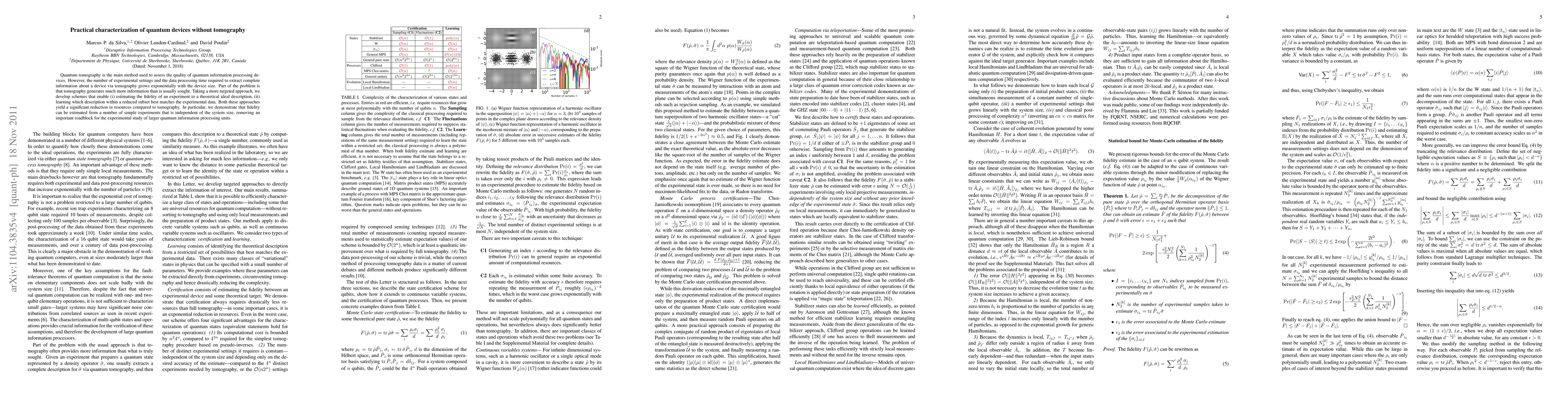 Quantum tomography is the main method used to assess the quality of quantum information processing devices, but its complexity presents a major obstacle for the characterization of even moderately large systems. The number of experimental settings required to extract complete information about a device grows exponentially with its size, and so does the running time for processing the data generated by these experiments. Part of the problem is that tomography generates much more information than is usually sought. Taking a more targeted approach, we develop schemes that enable (i) estimating the fidelity of an experiment to a theoretical ideal description, (ii) learning which description within a reduced subset best matches the experimental data. Both these approaches yield a significant reduction in resources compared to tomography. In particular, we demonstrate that fidelity can be estimated from a number of simple experimental settings that is independent of the system size, removing an important roadblock for the experimental study of larger quantum information processing units.