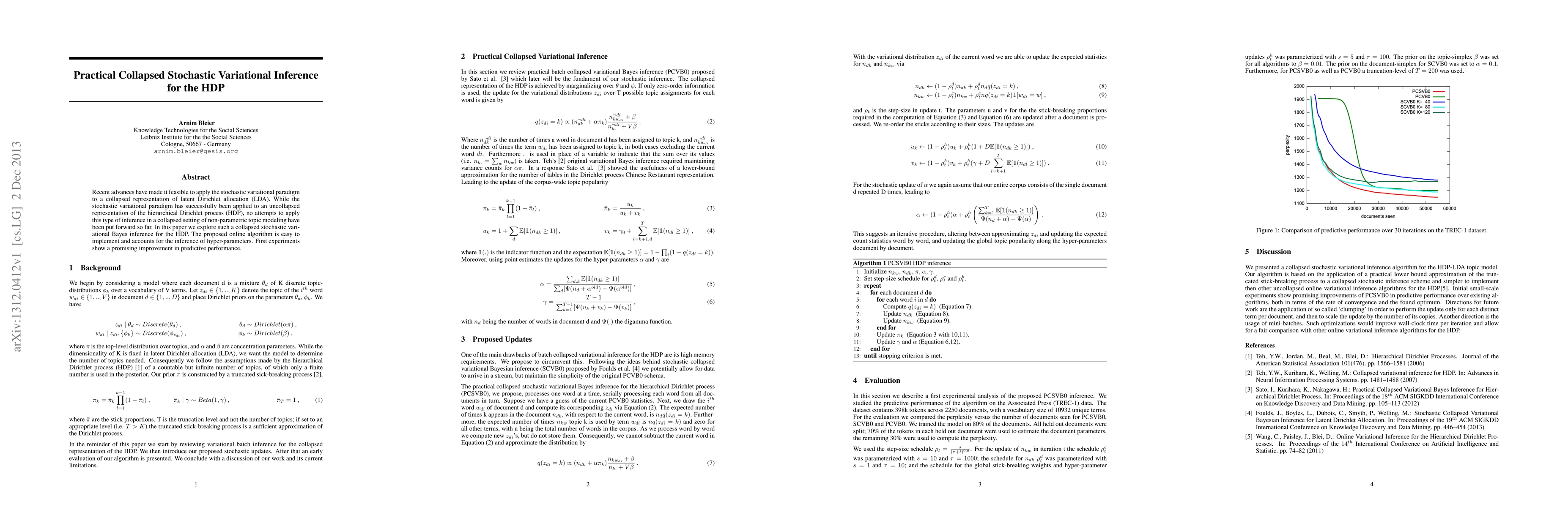 This paper proposes a collapsed stochastic variational Bayes inference for the hierarchical Dirichlet process (HDP), presenting an easy-to-implement online algorithm that improves predictive performance while accounting for hyper-parameter inference. Initial experiments indicate promising results in non-parametric topic modeling.