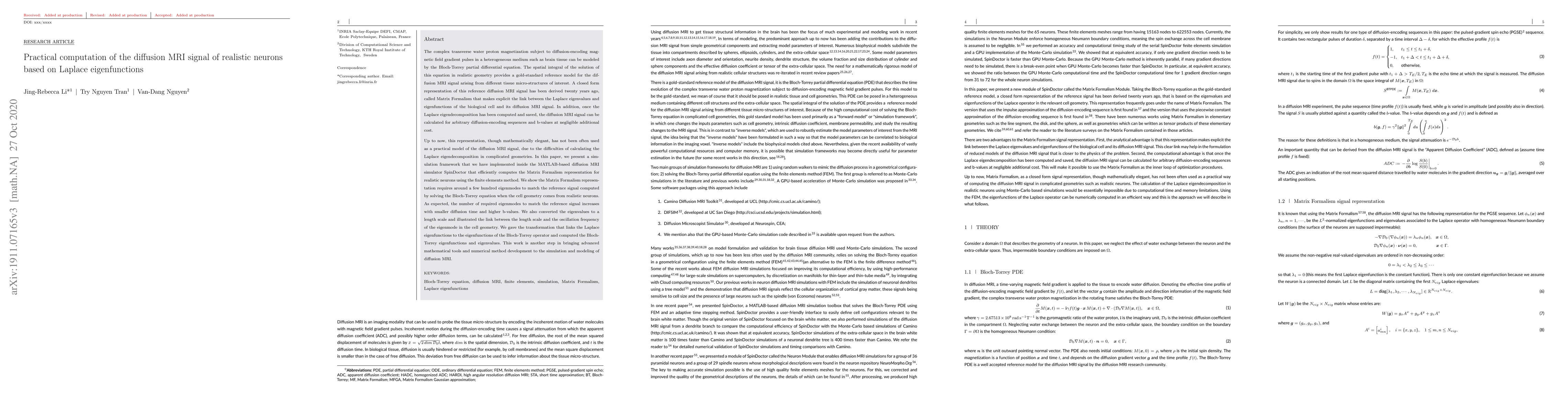 This paper presents a MATLAB-based simulation framework for efficiently computing the Matrix Formalism representation of the diffusion MRI signal using realistic neuron geometries and finite elements. The framework demonstrates that a few hundred eigenmodes are sufficient to match the reference signal, highlighting the practical utility of the Laplace eigendecomposition in diffusion MRI modeling.