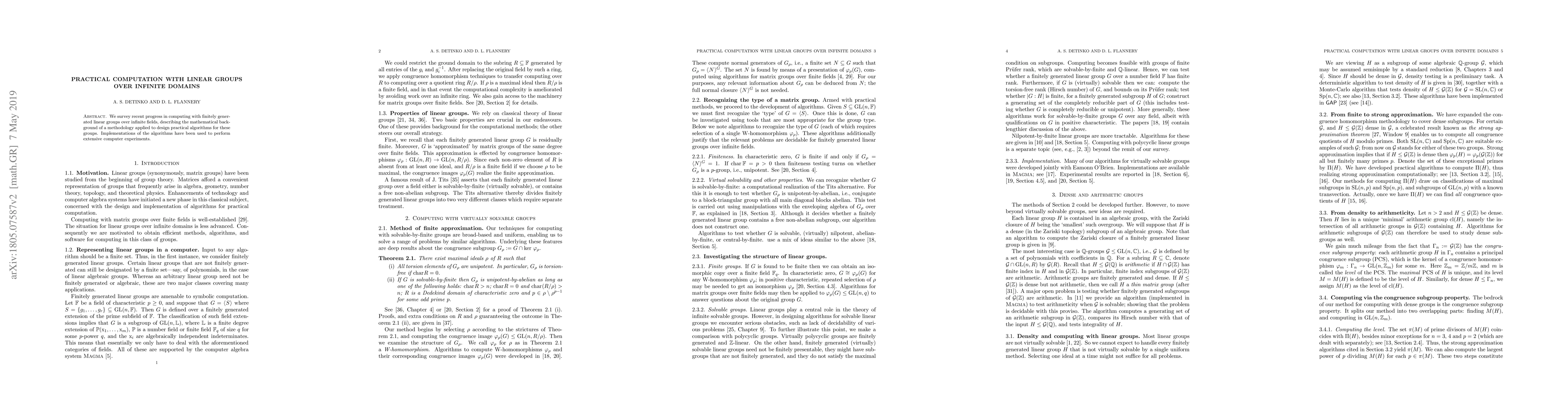 This paper surveys advancements in algorithms for computing with finitely generated linear groups over infinite fields, detailing the mathematical foundations and practical implementations that have enabled extensive computational experiments.