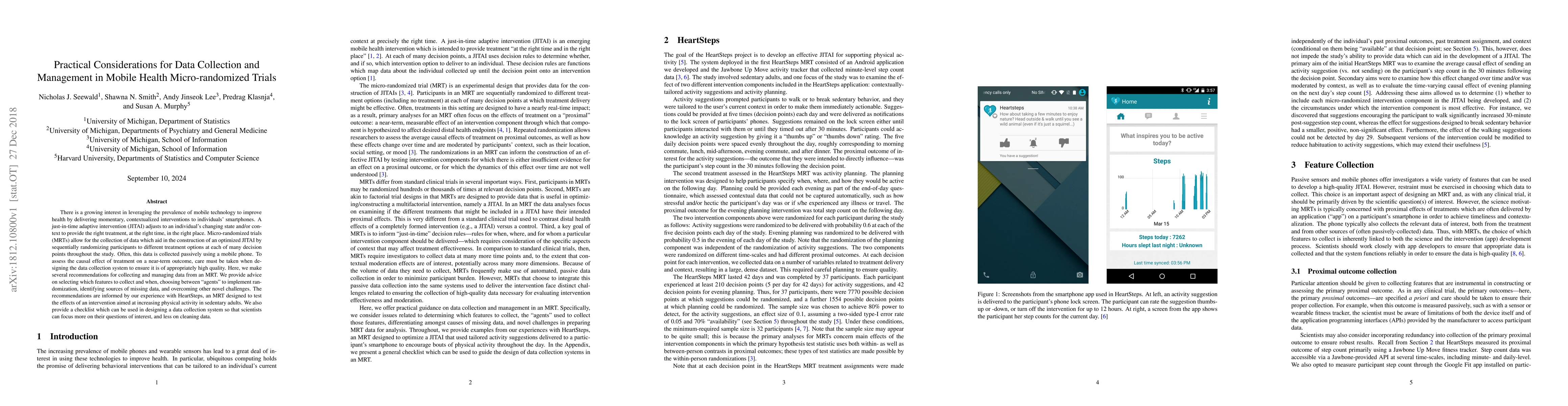 Mobile health trials can collect high-quality data using mobile phones, but careful design is needed to ensure accuracy. Researchers provide recommendations for selecting features, choosing randomization methods, and managing missing data in mobile health micro-randomized trials.
