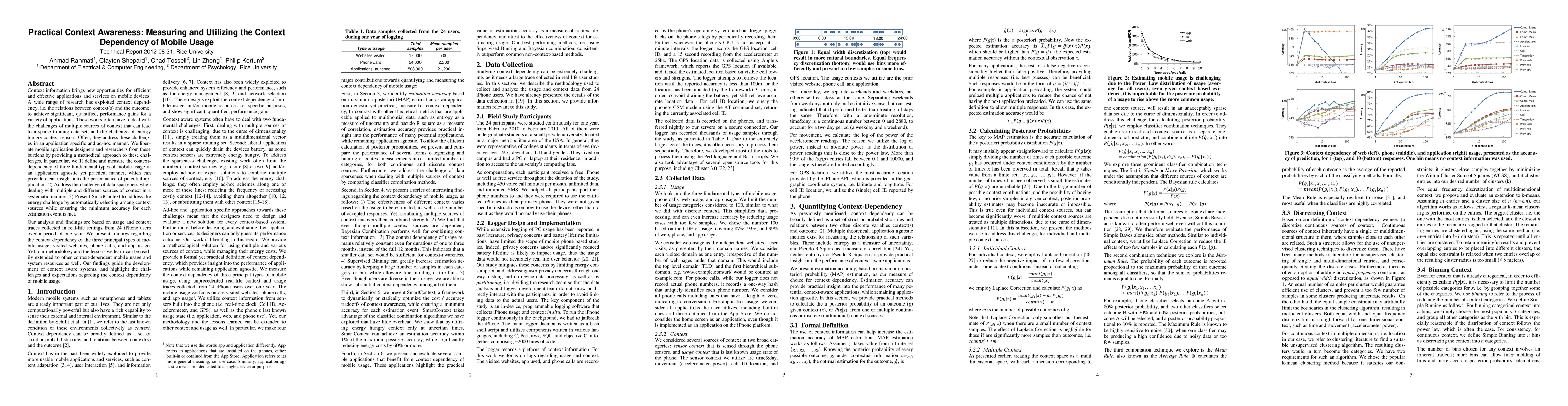 Context information brings new opportunities for efficient and effective applications and services on mobile devices. A wide range of research has exploited context dependency, i.e., the relations between context(s) and the outcome, to achieve significant, quantified, performance gains for a variety of applications. These works often have to deal with the challenges of multiple sources of context that can lead to a sparse training data set, and the challenge of energy hungry context sensors. Often, they address these challenges in an application specific and ad-hoc manner. We liberate mobile application designers and researchers from these burdens by providing a methodical approach to these challenges. In particular, we 1) define and measure the context-dependency of three fundamental types of mobile usage in an application agnostic yet practical manner, which can provide clear insight into the performance of potential ap-plication. 2) Address the challenge of data sparseness when dealing with multiple and different sources of context in a systematic manner. 3) Present SmartContext to address the energy challenge by automatically selecting among context sources while ensuring the minimum accuracy for each estimation event is met. Our analysis and findings are based on usage and context traces collected in real-life settings from 24 iPhone users over a period of one year. We present findings regarding the context dependency of the three principal types of mobile usage; visited websites, phone calls, and app usage. Yet, our methodology and the lessons we learn can be readily extended to other context-dependent mobile usage and system resources as well. Our findings guide the development of context aware systems, and highlight the challenges and expectations regarding the context dependency of mobile usage.