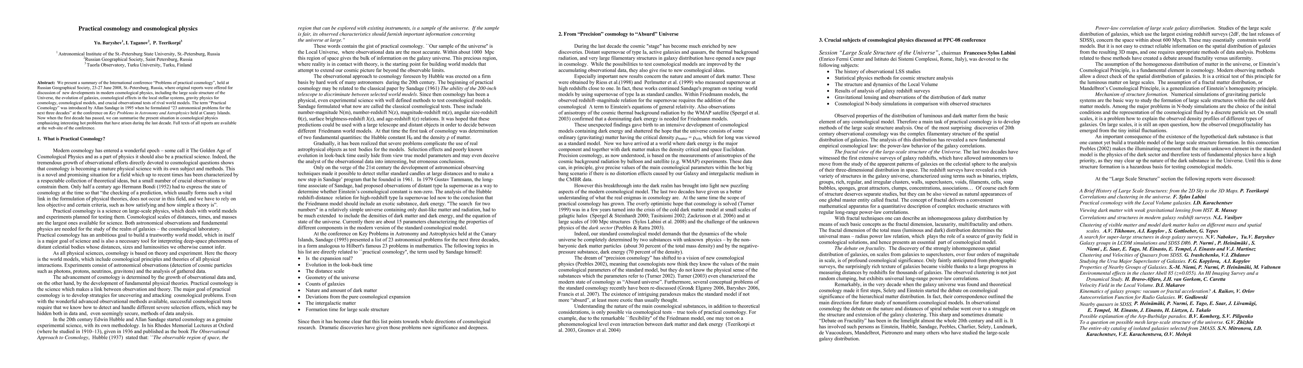 This paper summarizes discussions from the International conference on "Problems of practical cosmology," focusing on advancements in cosmological physics, including the large-scale structure of the Universe, galaxy evolution, and observational tests of cosmological models. The term "Practical Cosmology" was introduced by Allan Sandage in 1995 to highlight key astronomical problems for future research.