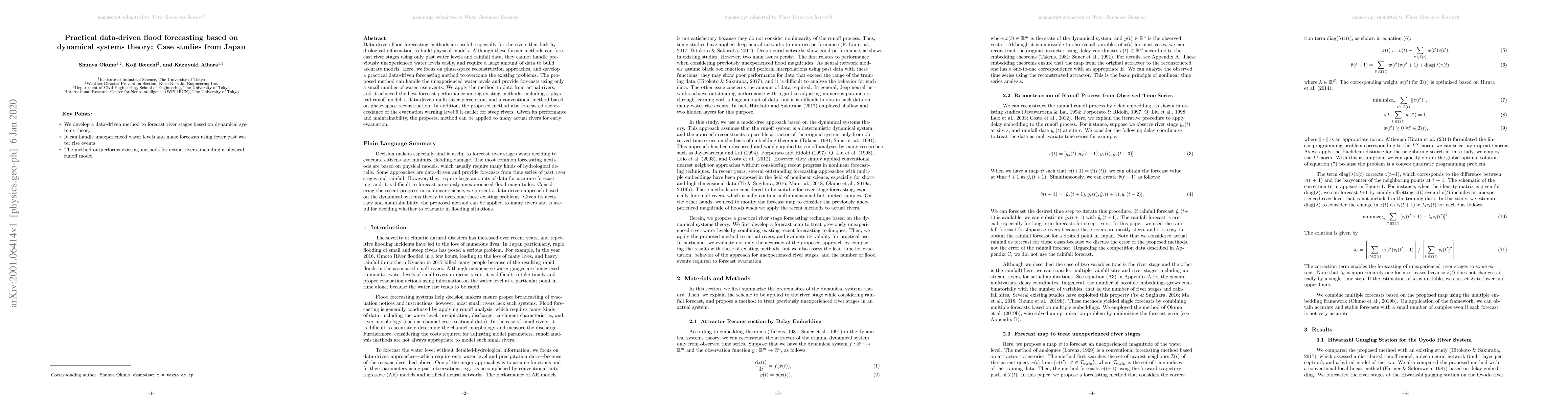 Data-driven flood forecasting methods are useful, especially for the rivers that lack hydrological information to build physical models. Although these former methods can forecast river stages using only past water levels and rainfall data, they cannot handle previously unexperienced water levels easily, and require a large amount of data to build accurate models. Here, we focus on phase-space reconstruction approaches, and develop a practical data-driven forecasting method to overcome the existing problems. The proposed method can handle the unexperienced water levels and provide forecasts using only a small number of water rise events. We apply the method to data from actual rivers, and it achieved the best forecast performance among existing methods, including a physical runoff model, a data-driven multi-layer perceptron, and a conventional method based on phase-space reconstruction. In addition, the proposed method also forecasted the exceedance of the evacuation warning level 6 h earlier for steep rivers. Given its performance and maintainability, the proposed method can be applied to many actual rivers for early evacuation.