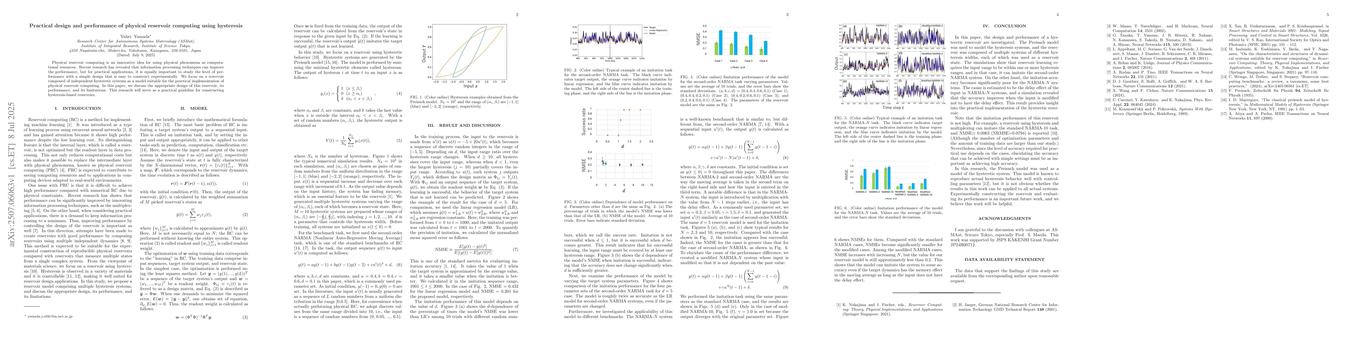 Physical reservoir computing is an innovative idea for using physical phenomena as computational resources. Recent research has revealed that information processing techniques can improve the performance, but for practical applications, it is equally important to study the level of performance with a simple design that is easy to construct experimentally. We focus on a reservoir composed of independent hysteretic systems as a model suitable for the practical implementation of physical reservoir computing. In this paper, we discuss the appropriate design of this reservoir, its performance, and its limitations. This research will serve as a practical guideline for constructing hysteresis-based reservoirs.