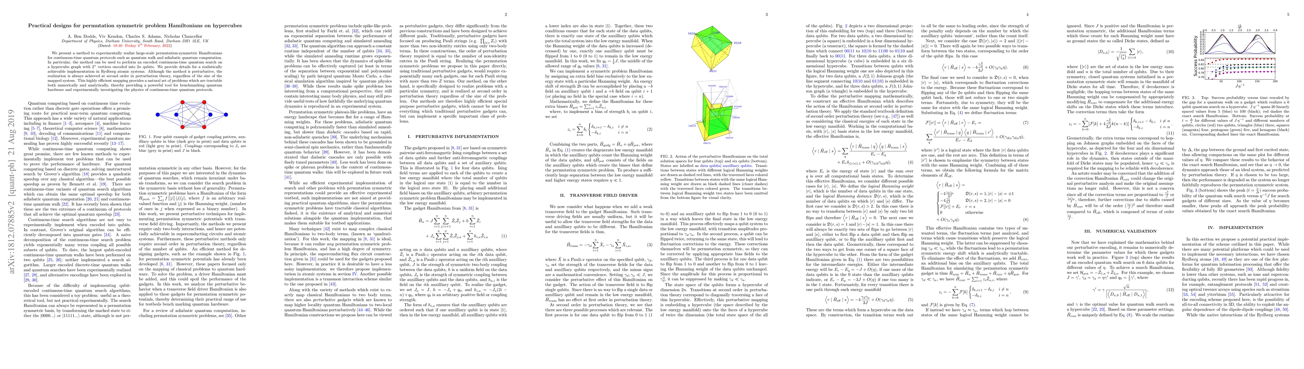 We present a method to experimentally realize large-scale permutation-symmetric Hamiltonians for continuous-time quantum protocols such as quantum walk and adiabatic quantum computation. In particular, the method can be used to perform an encoded continuous-time quantum search on a hypercube graph with 2^n vertices encoded into 2n qubits. We provide details for a realistically achievable implementation in Rydberg atomic systems. Although the method is perturbative, the realization is always achieved at second order in perturbation theory, regardless of the size of the mapped system. This highly efficient mapping provides a natural set of problems which are tractable both numerically and analytically, thereby providing a powerful tool for benchmarking quantum hardware and experimentally investigating the physics of continuous-time quantum protocols.