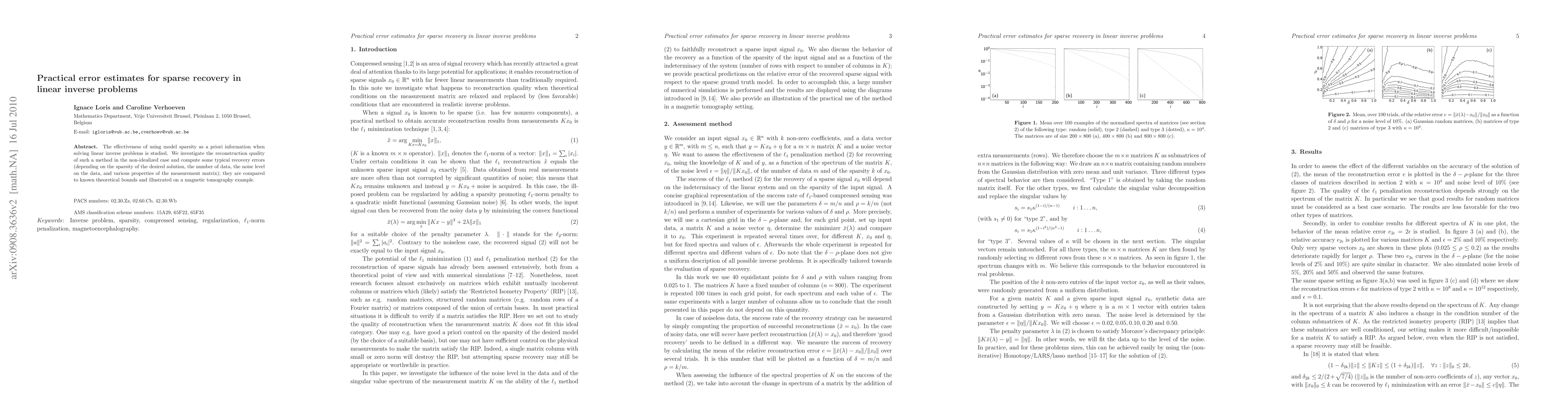 This paper examines the practical error estimates for sparse recovery in linear inverse problems, analyzing reconstruction quality and typical recovery errors in non-ideal conditions, and compares these to theoretical bounds using a magnetic tomography example.
