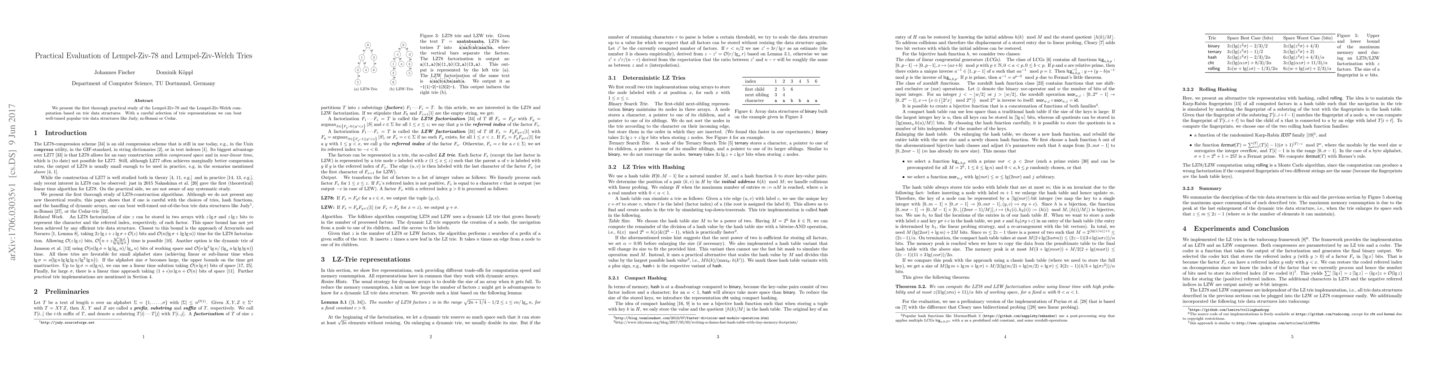 This paper conducts a practical evaluation of Lempel-Ziv-78 and Lempel-Ziv-Welch algorithms implemented using trie data structures, demonstrating superior performance compared to well-established alternatives like Judy, m-Bonsai, and Cedar.