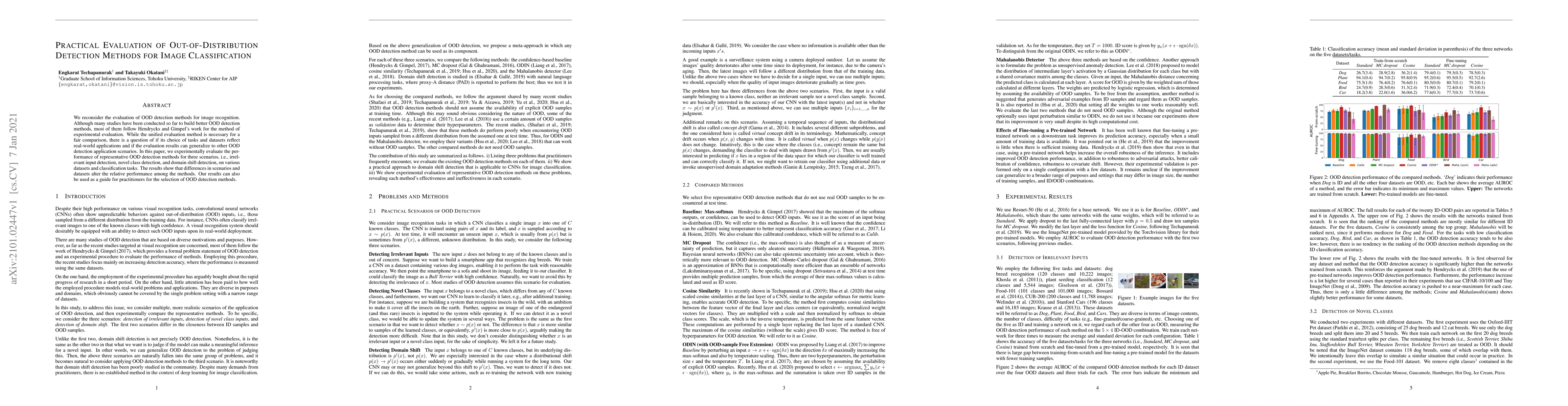 This paper evaluates the performance of various out-of-distribution detection methods across different scenarios and datasets, revealing that method performance varies significantly depending on the specific application context. The findings provide useful insights for practitioners when selecting appropriate OOD detection techniques.
