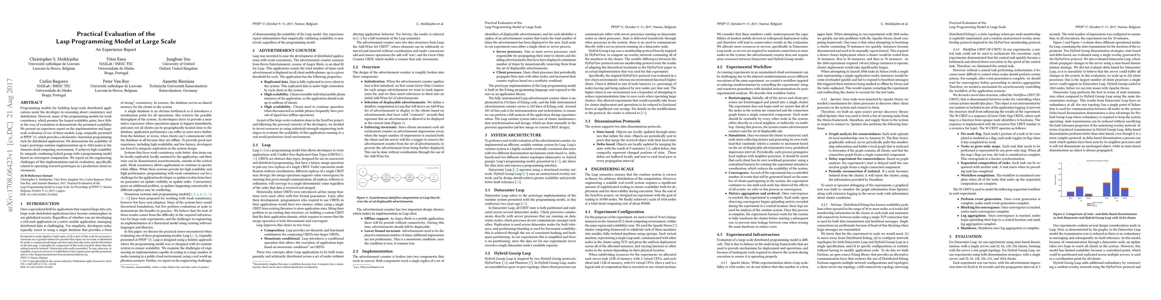Programming models for building large-scale distributed applications assist the developer in reasoning about consistency and distribution. However, many of the programming models for weak consistency, which promise the largest scalability gains, have little in the way of evaluation to demonstrate the promised scalability. We present an experience report on the implementation and large-scale evaluation of one of these models, Lasp, originally presented at PPDP `15, which provides a declarative, functional programming style for distributed applications. We demonstrate the scalability of Lasp's prototype runtime implementation up to 1024 nodes in the Amazon cloud computing environment. It achieves high scalability by uniquely combining hybrid gossip with a programming model based on convergent computation. We report on the engineering challenges of this implementation and its evaluation, specifically related to operating research prototypes in a production cloud environment.
