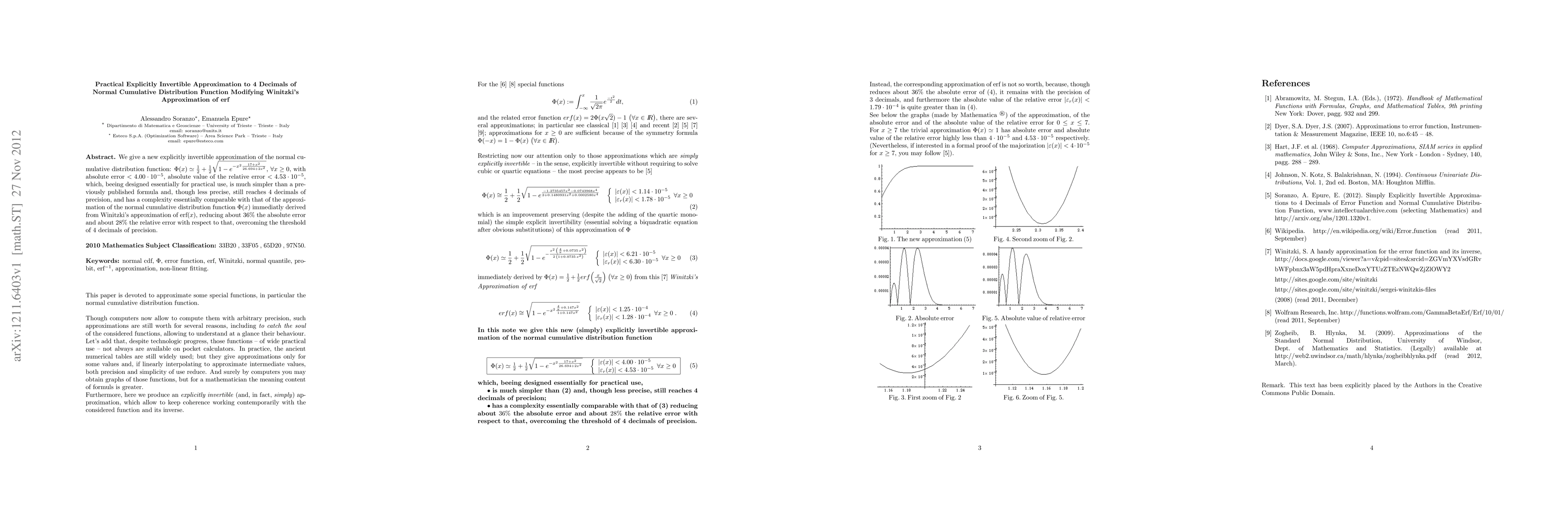 This paper presents a new, simpler explicitly invertible approximation for the normal cumulative distribution function $\Phi(x)$ with high precision to four decimal places, achieving an absolute error of less than $4.00 \times 10^{-5}$ and reducing both absolute and relative error by about 36% and 28% respectively compared to Winitzki's approximation.