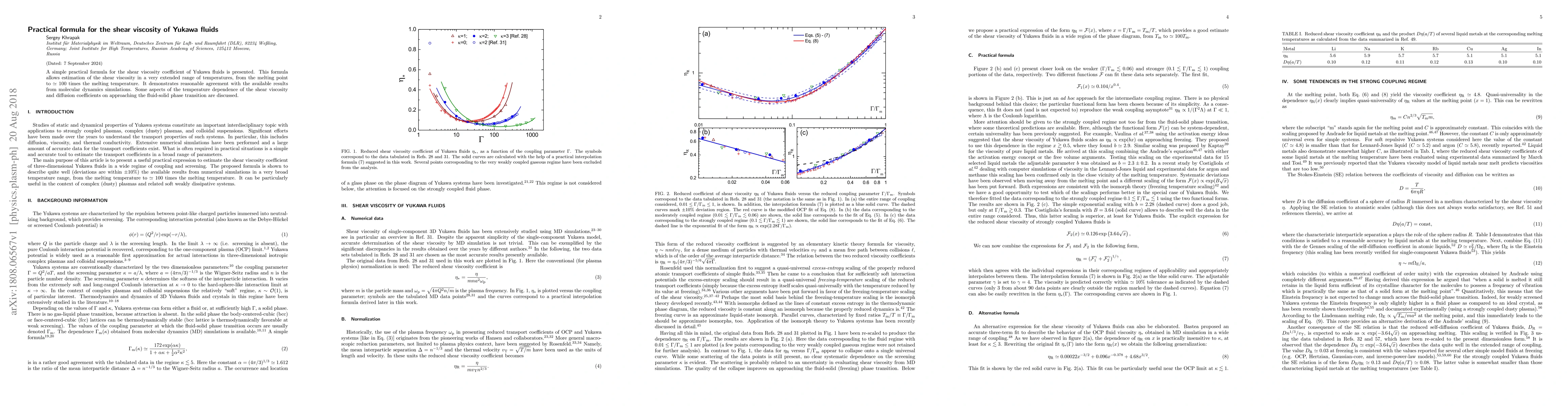 This paper presents a practical formula for estimating the shear viscosity of Yukawa fluids across a wide temperature range, showing good agreement with molecular dynamics simulations. It also explores the temperature dependence of shear viscosity and diffusion near the fluid-solid phase transition.