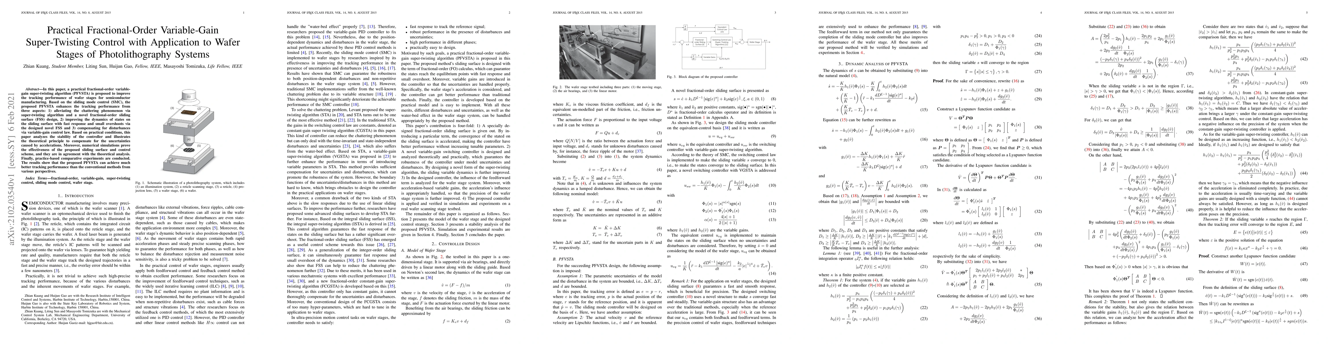 In this paper, a practical fractional-order variable-gain super-twisting algorithm (PFVSTA) is proposed to improve the tracking performance of wafer stages for semiconductor manufacturing. Based on the sliding mode control (SMC), the proposed PFVSTA enhances the tracking performance from three aspects: 1) alleviating the chattering phenomenon via super-twisting algorithm and a novel fractional-order sliding surface~(FSS) design, 2) improving the dynamics of states on the sliding surface with fast response and small overshoots via the designed novel FSS and 3) compensating for disturbances via variable-gain control law. Based on practical conditions, this paper analyzes the stability of the controller and illustrates the theoretical principle to compensate for the uncertainties caused by accelerations. Moreover, numerical simulations prove the effectiveness of the proposed sliding surface and control scheme, and they are in agreement with the theoretical analysis. Finally, practice-based comparative experiments are conducted. The results show that the proposed PFVSTA can achieve much better tracking performance than the conventional methods from various perspectives.