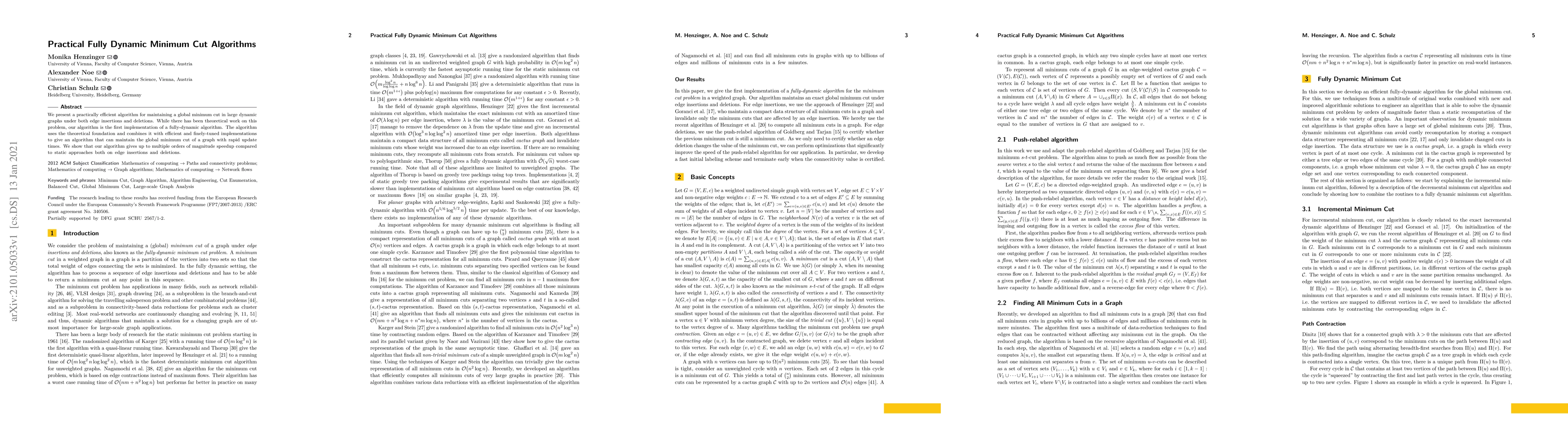 This paper introduces a practically efficient fully-dynamic algorithm for maintaining a global minimum cut in large, dynamically changing graphs, achieving significant speedups over static methods. The algorithm combines theoretical foundations with optimized implementations for rapid update times.
