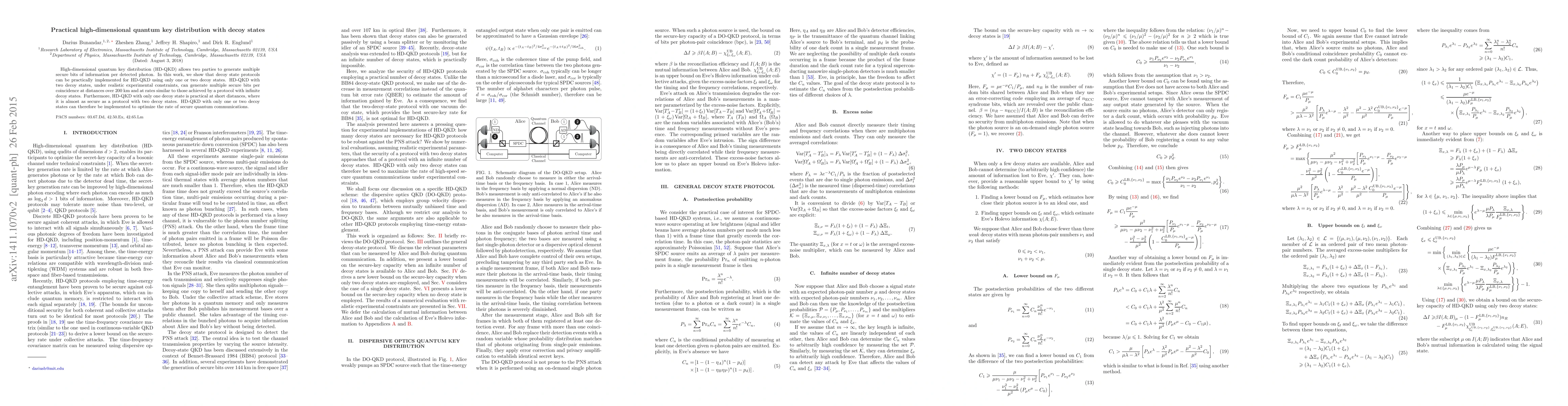 This paper demonstrates practical high-dimensional quantum key distribution (HD-QKD) using decoy states, showing that one or two decoy states can achieve secure bit generation over 200 km with rates comparable to protocols using infinite decoy states. HD-QKD with one decoy state is effective for short distances, nearly as secure as the two-decoy state protocol.
