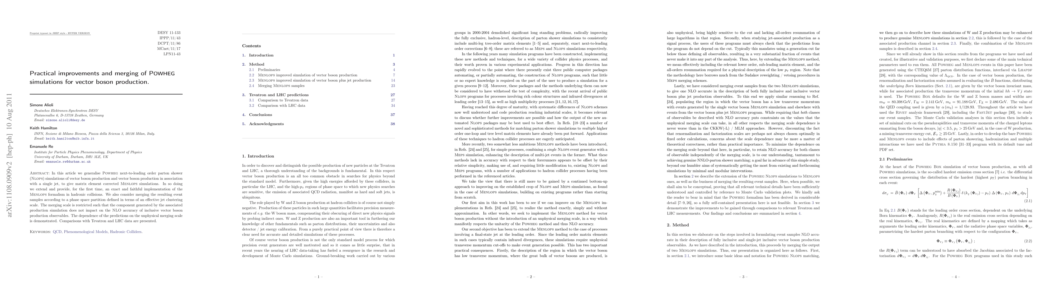 This paper generalizes POWHEG next-to-leading order parton shower simulations for vector boson production and introduces matrix element-corrected MENLO-PS simulations. It also explores merging event samples based on an effective jet clustering scale, ensuring NLO accuracy for vector boson observables, and compares results with Tevatron and LHC data.