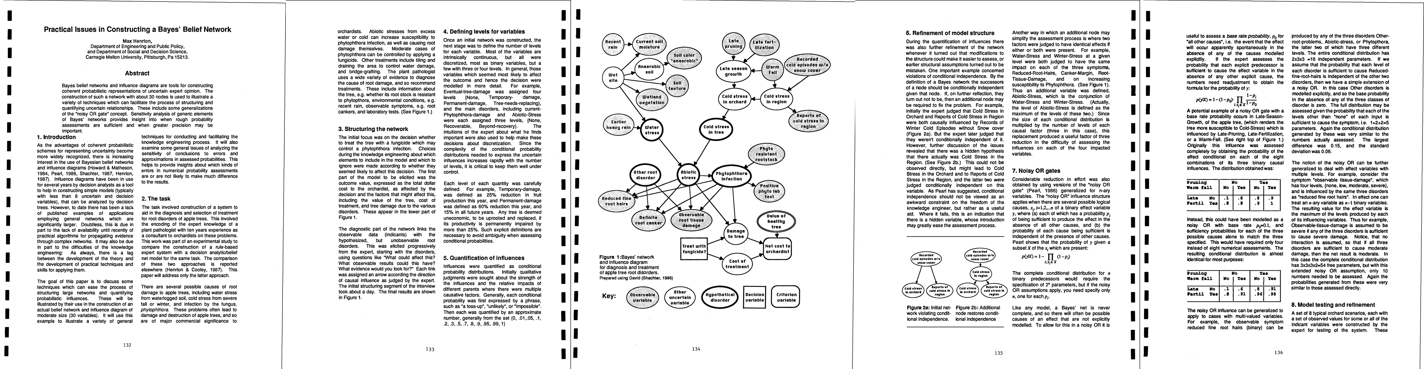 Bayes belief networks and influence diagrams are tools for constructing coherent probabilistic representations of uncertain knowledge. The process of constructing such a network to represent an expert's knowledge is used to illustrate a variety of techniques which can facilitate the process of structuring and quantifying uncertain relationships. These include some generalizations of the "noisy OR gate" concept. Sensitivity analysis of generic elements of Bayes' networks provides insight into when rough probability assessments are sufficient and when greater precision may be important.