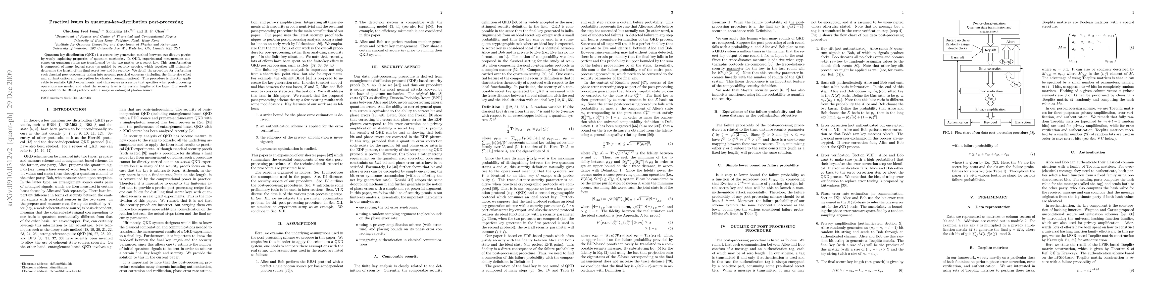 Quantum key distribution (QKD) is a secure key generation method between two distant parties by wisely exploiting properties of quantum mechanics. In QKD, experimental measurement outcomes on quantum states are transformed by the two parties to a secret key. This transformation is composed of many logical steps (as guided by security proofs), which together will ultimately determine the length of the final secret key and its security. We detail the procedure for performing such classical post-processing taking into account practical concerns (including the finite-size effect and authentication and encryption for classical communications). This procedure is directly applicable to realistic QKD experiments, and thus serves as a recipe that specifies what post-processing operations are needed and what the security level is for certain lengths of the keys. Our result is applicable to the BB84 protocol with a single or entangled photon source.
