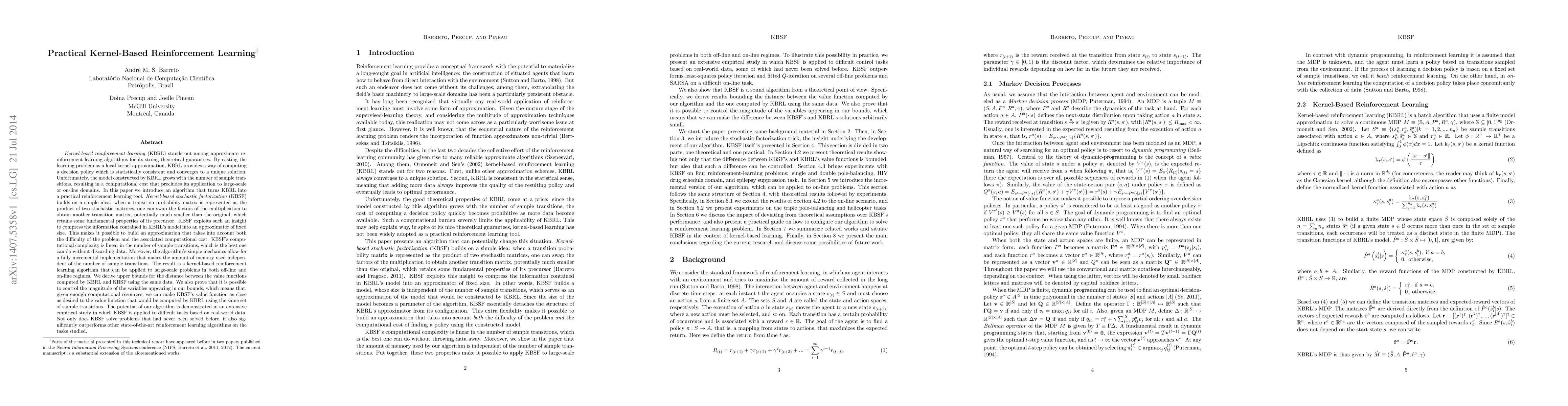 This paper introduces Kernel-based Stochastic Factorization (KBSF), a practical kernel-based reinforcement learning algorithm that reduces computational cost without compromising on accuracy, enabling its application to large-scale problems in both offline and online regimes.