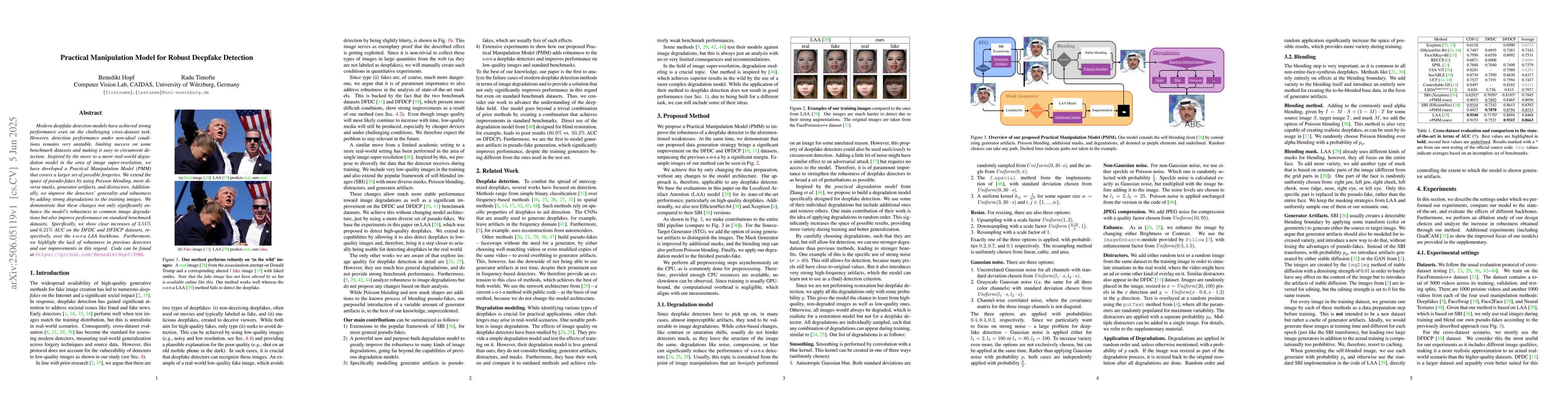 Modern deepfake detection models have achieved strong performance even on the challenging cross-dataset task. However, detection performance under non-ideal conditions remains very unstable, limiting success on some benchmark datasets and making it easy to circumvent detection. Inspired by the move to a more real-world degradation model in the area of image super-resolution, we have developed a Practical Manipulation Model (PMM) that covers a larger set of possible forgeries. We extend the space of pseudo-fakes by using Poisson blending, more diverse masks, generator artifacts, and distractors. Additionally, we improve the detectors' generality and robustness by adding strong degradations to the training images. We demonstrate that these changes not only significantly enhance the model's robustness to common image degradations but also improve performance on standard benchmark datasets. Specifically, we show clear increases of $3.51\%$ and $6.21\%$ AUC on the DFDC and DFDCP datasets, respectively, over the s-o-t-a LAA backbone. Furthermore, we highlight the lack of robustness in previous detectors and our improvements in this regard. Code can be found at https://github.com/BenediktHopf/PMM