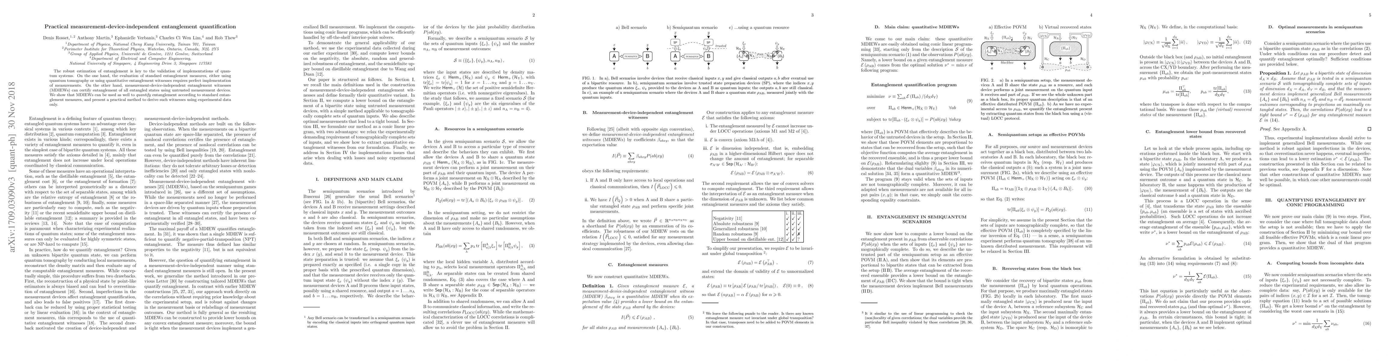 This paper proposes a method for quantifying entanglement using measurement-device-independent entanglement witnesses (MDIEWs) without requiring perfect measurement devices. It presents a practical approach to derive MDIEWs based solely on experimental data to certify entanglement.