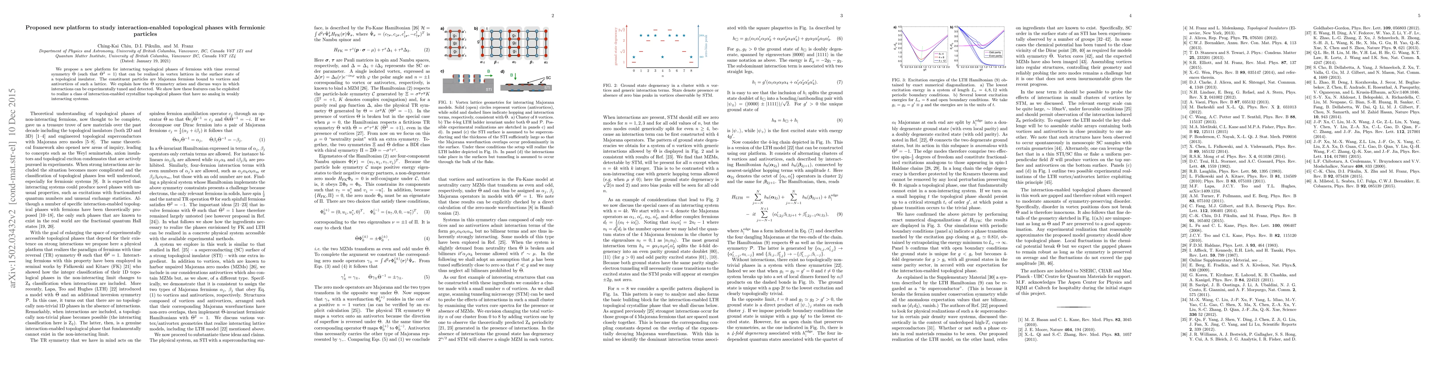 Systems of strongly interacting particles, fermions or bosons, can give rise to topological phases that are not acessible to non-interacting systems. Many such interaction-enabled topological phases have been discussed theoretically but few experimental realizations exists. Here we propose a new platform for interacting topological phases of fermions with time reversal symmetry $\bar T$ (such that $\bar T^2=1$) that can be realized in vortex lattices in the surface state of a topological insulator. The constituent particles are Majorana fermions bound to vortices and antivortices of such a lattice. We explain how the $\bar T$ symmetry arises and discuss ways in which interactions can be experimentally tuned and detected. We show how these features can be exploited to realize a class of interaction-enabled crystalline topological phases that have no analog in weakly interacting systems.