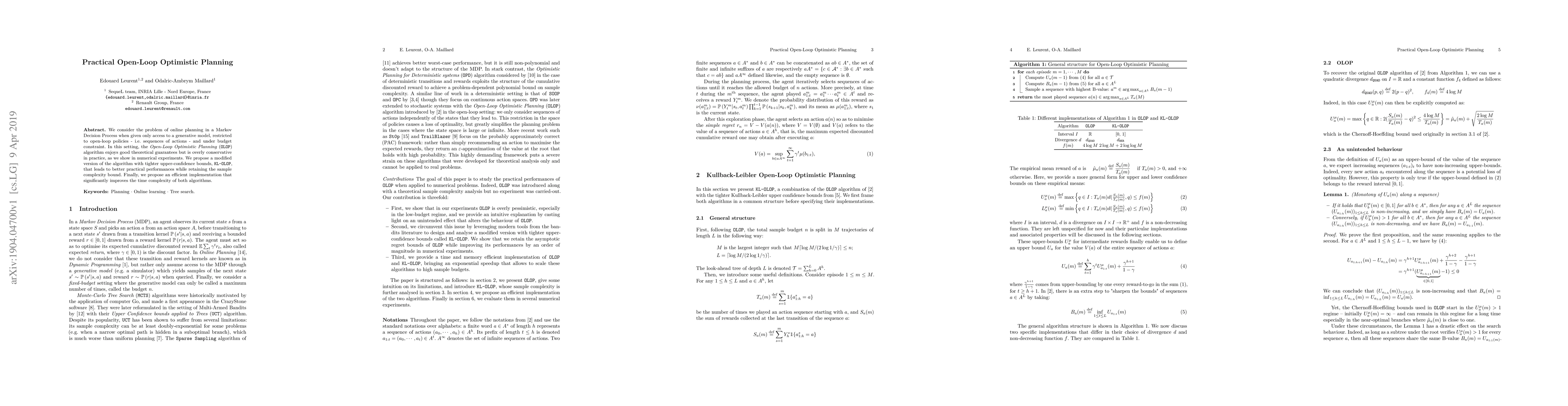 Researchers improved Open-Loop Optimistic Planning (OLOP) to achieve better practical performance while retaining theoretical guarantees, leading to tighter upper-confidence bounds and increased efficiency in online planning with limited access to a generative model.